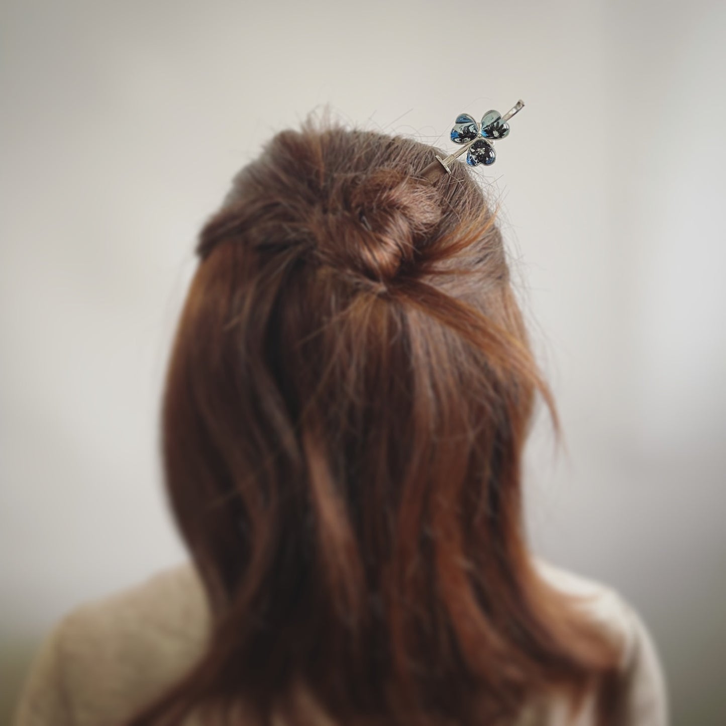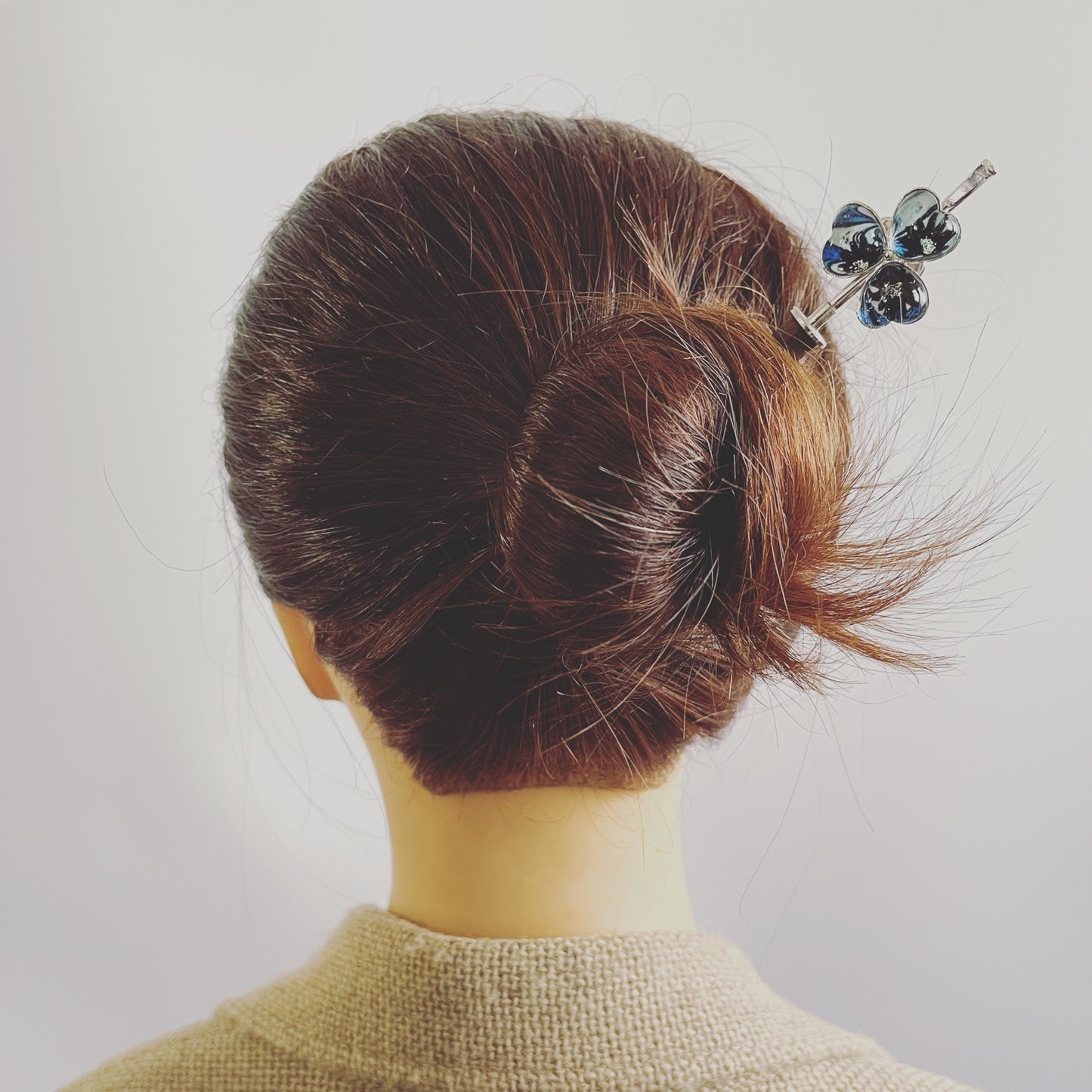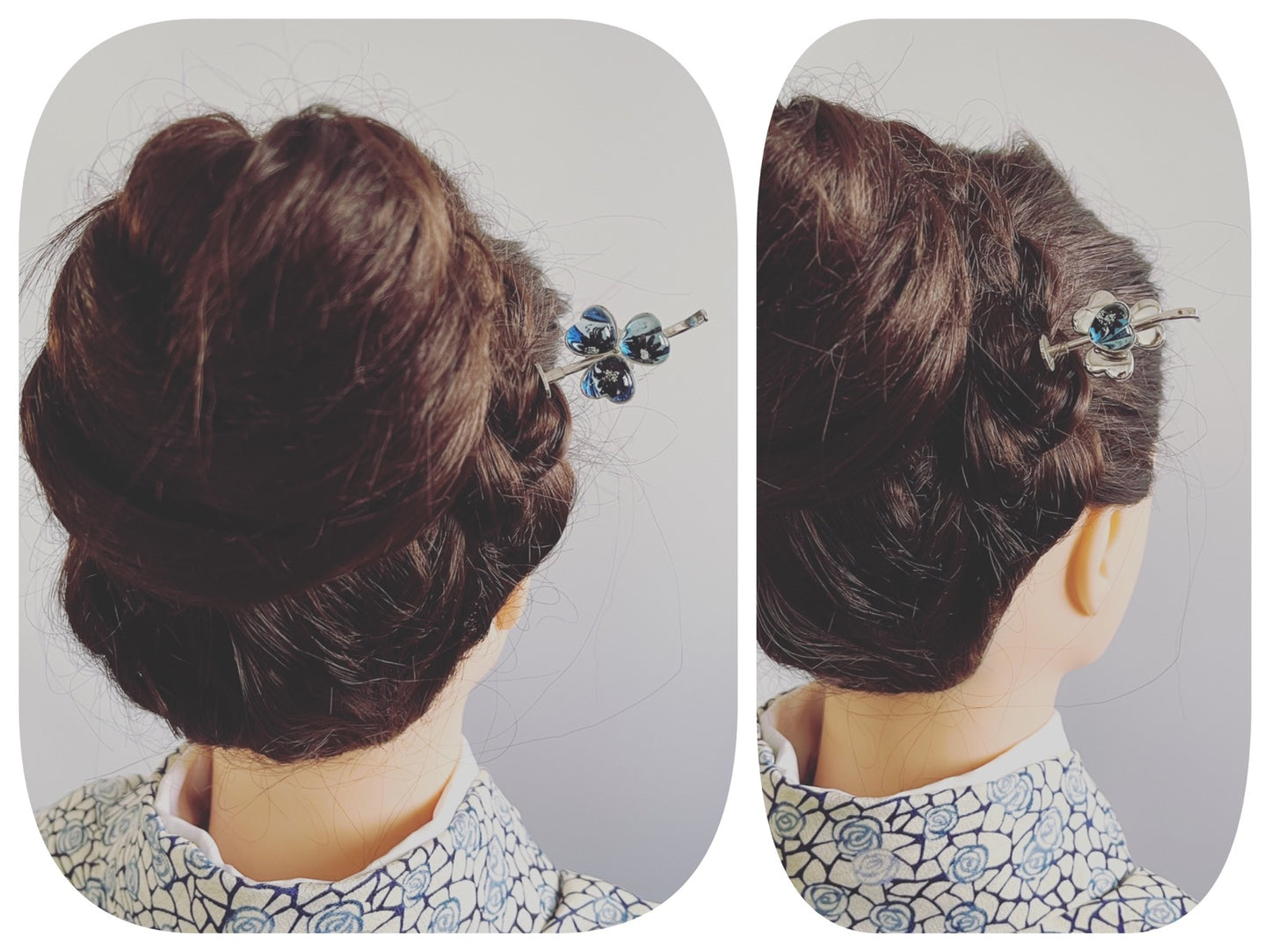 It is a flower hair stick using the resin parts from the "Mable Series" (Blue). Just insert it in a bun, and you have a great hairstyle. It is convenient for casual or day-to-day use. It can be used for a long time, regardless of age.