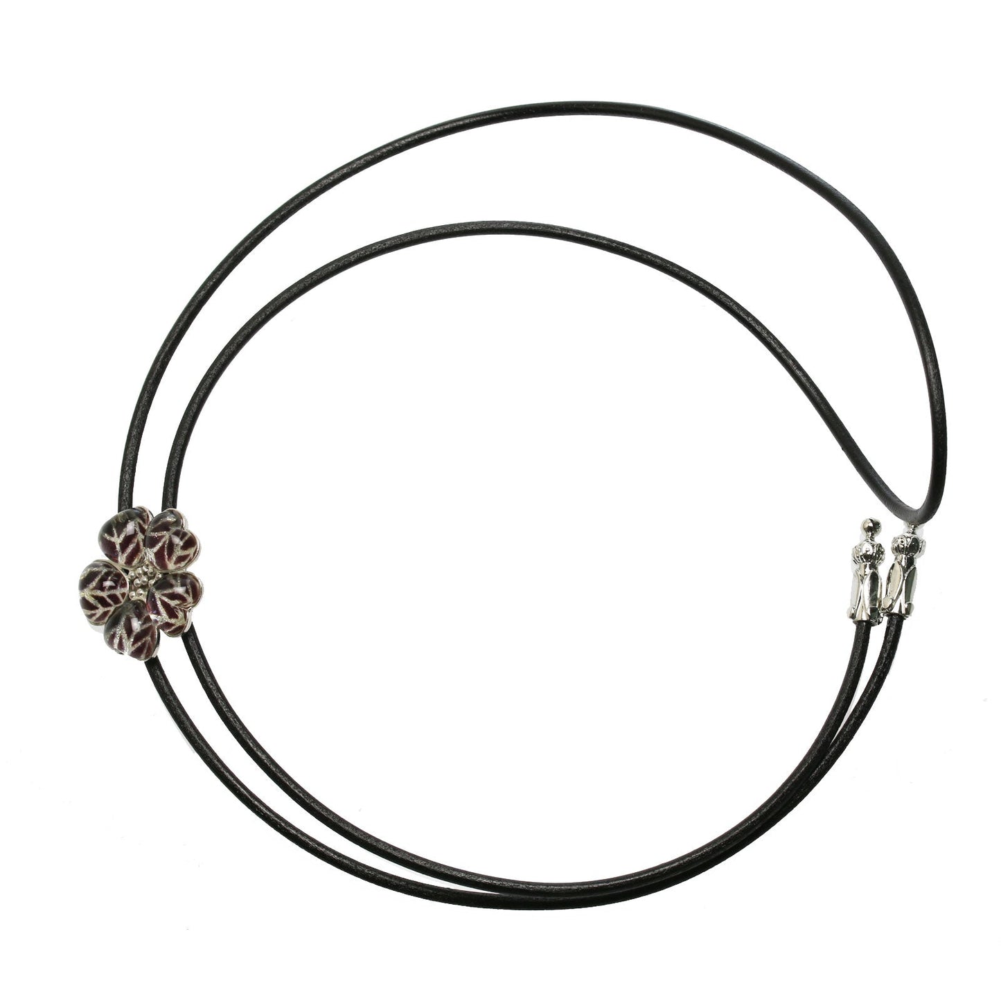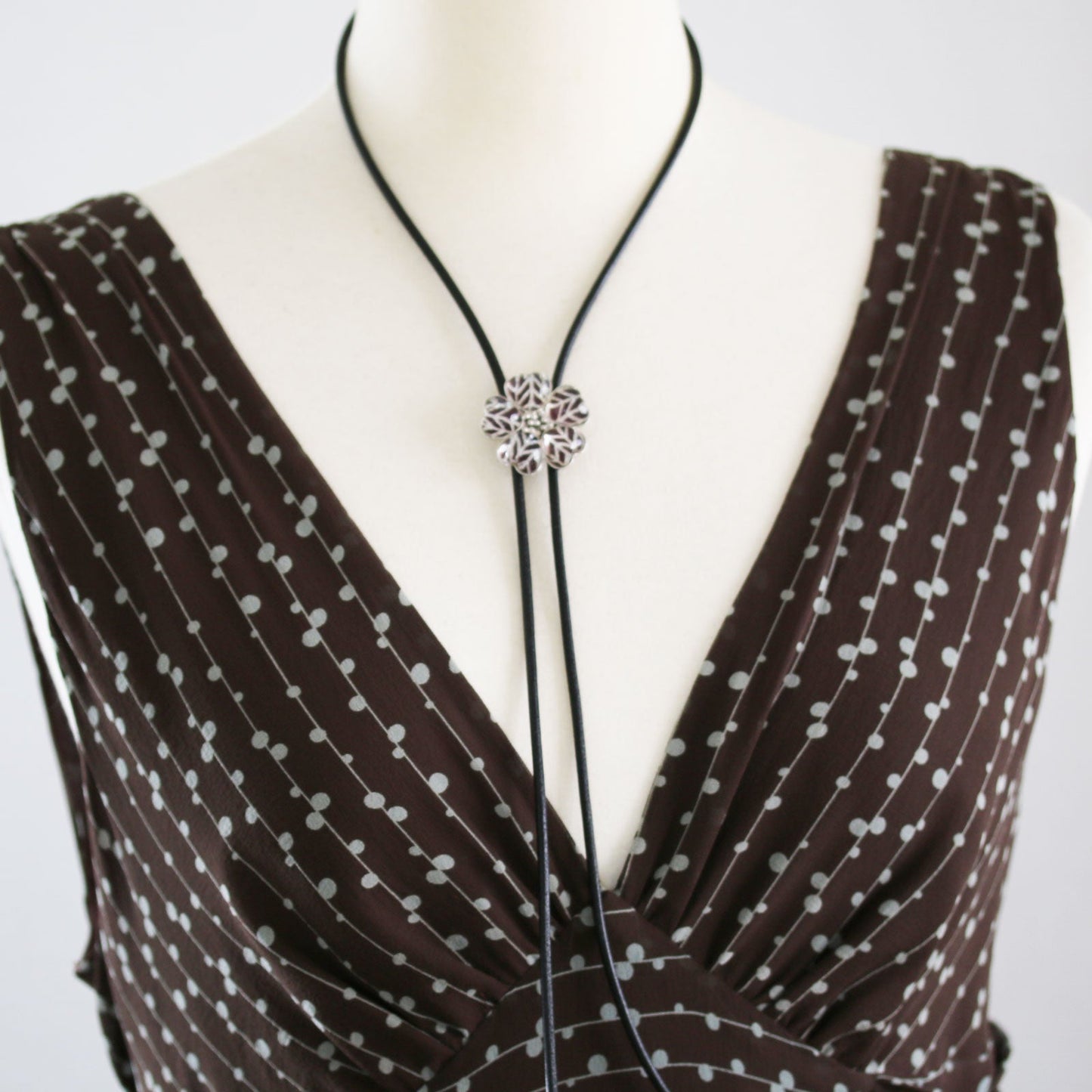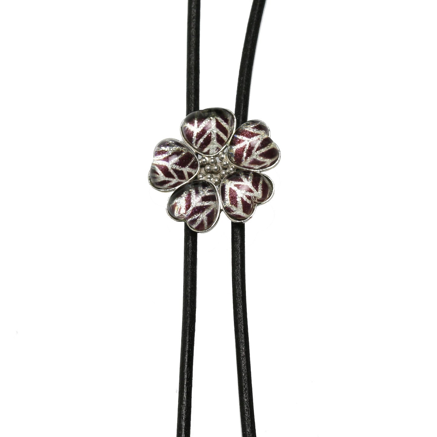 Leather Strap Bolo Tie Herringbone Flower