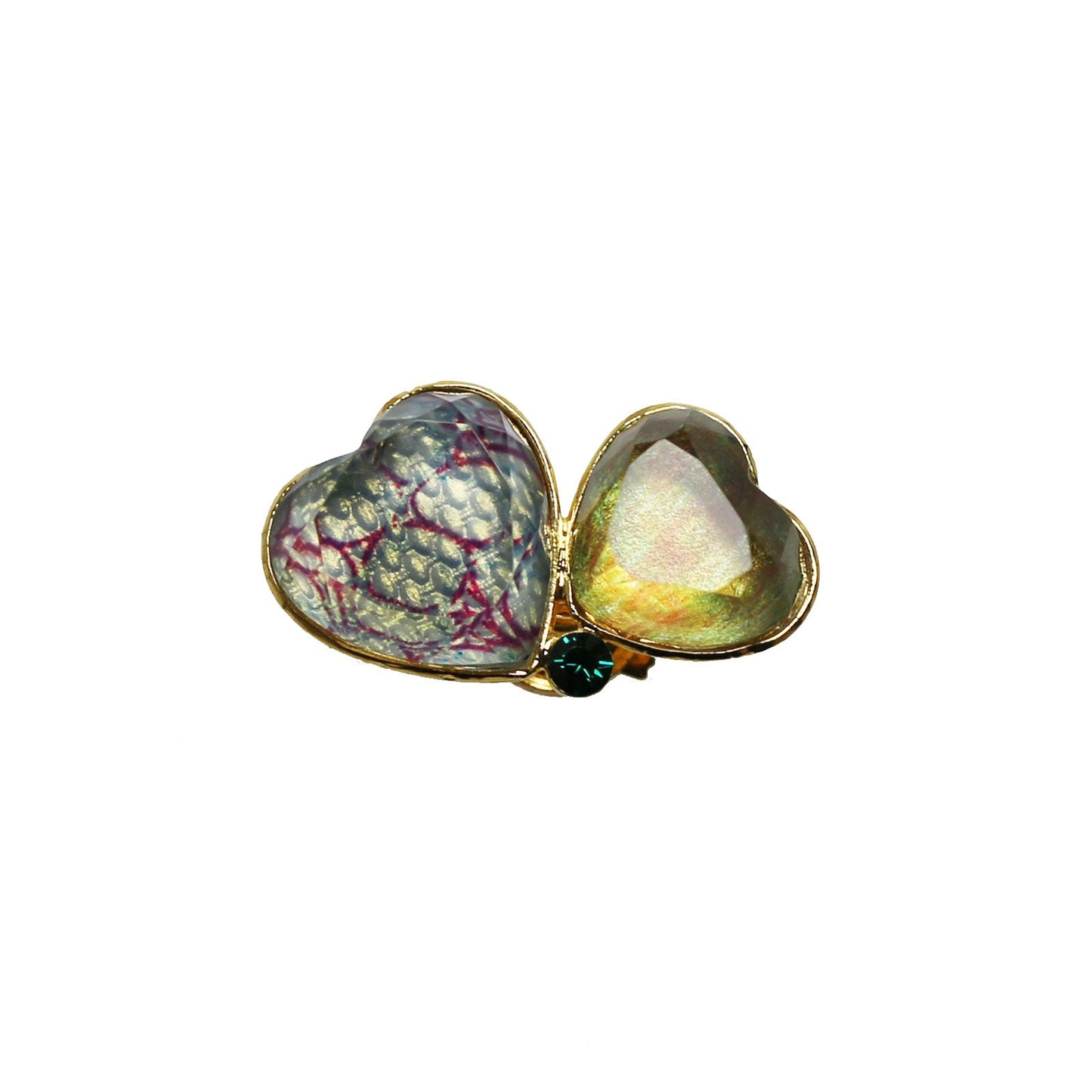 Pin Brooch Lapel Heart Blue Yellow Green Gold