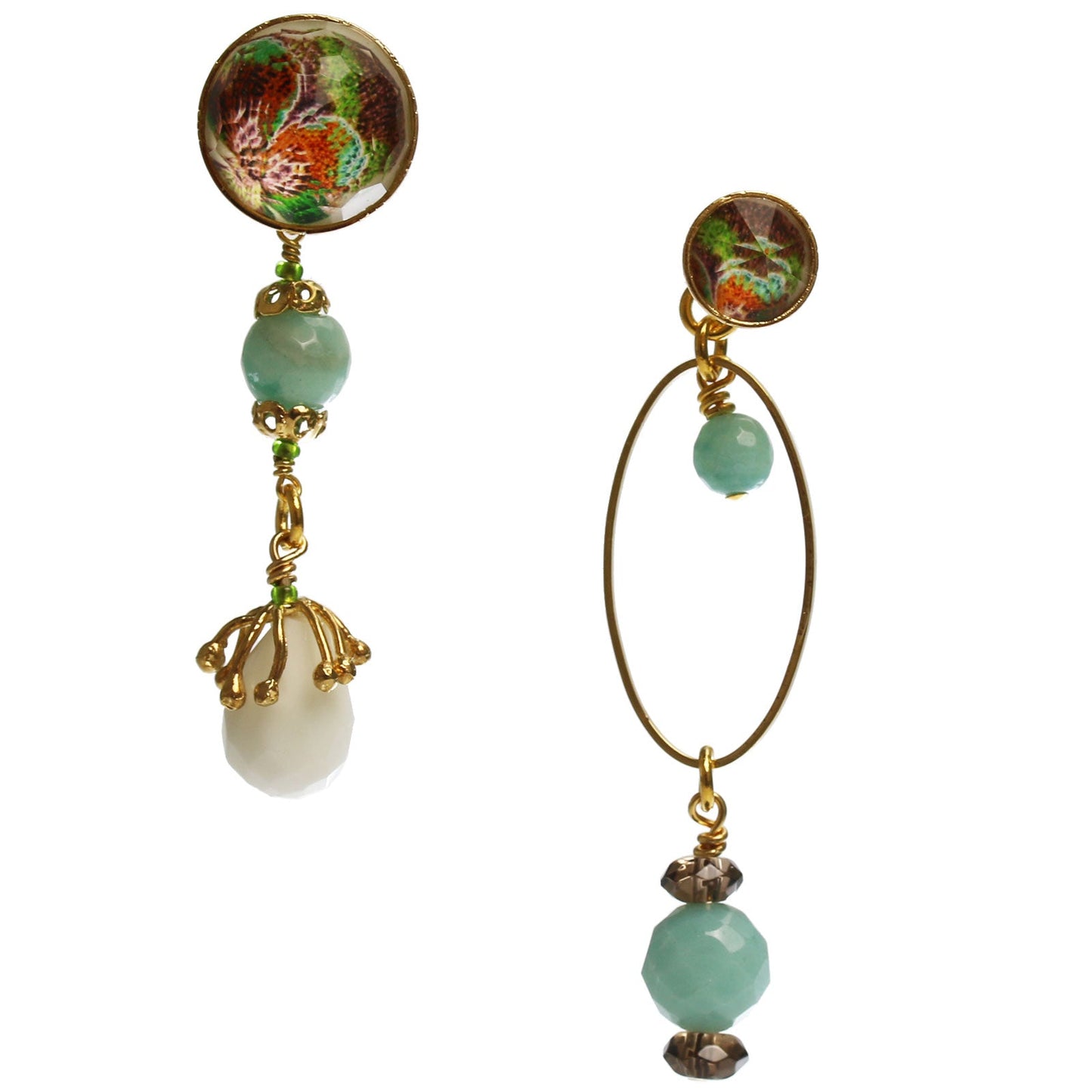 Mismatched Stud Earrings Colorful Pansy Asymmetry Multicolor