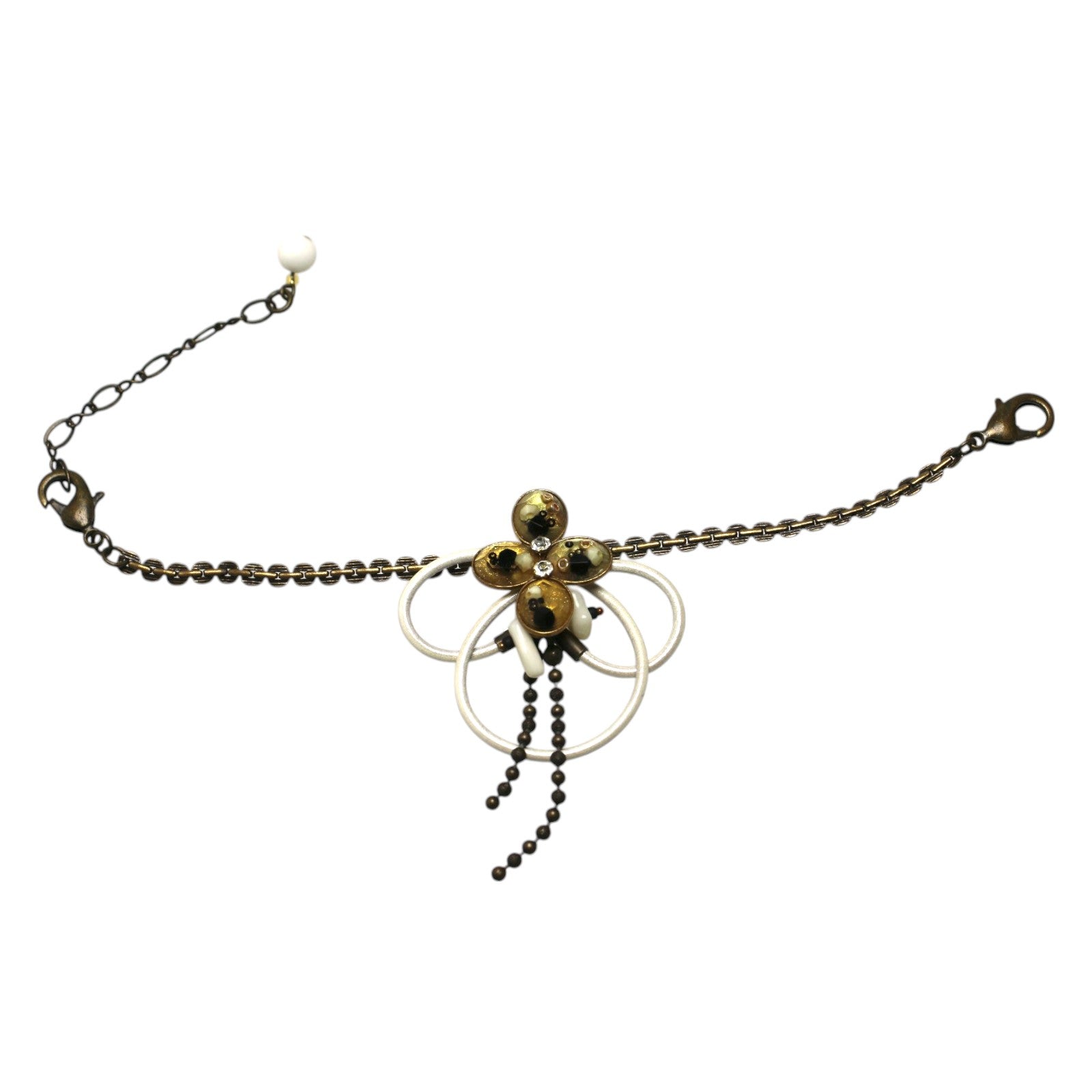 This fashionable bracelet cord features the resin components from the "Sesame & Salt Series" and is accented with a white leather cord reminiscent of traditional mizuhiki knots. Designed to complement kimono outfits, it can also be worn as a bracelet. A perfect jewelry for yourself or as a thoughtful gift.