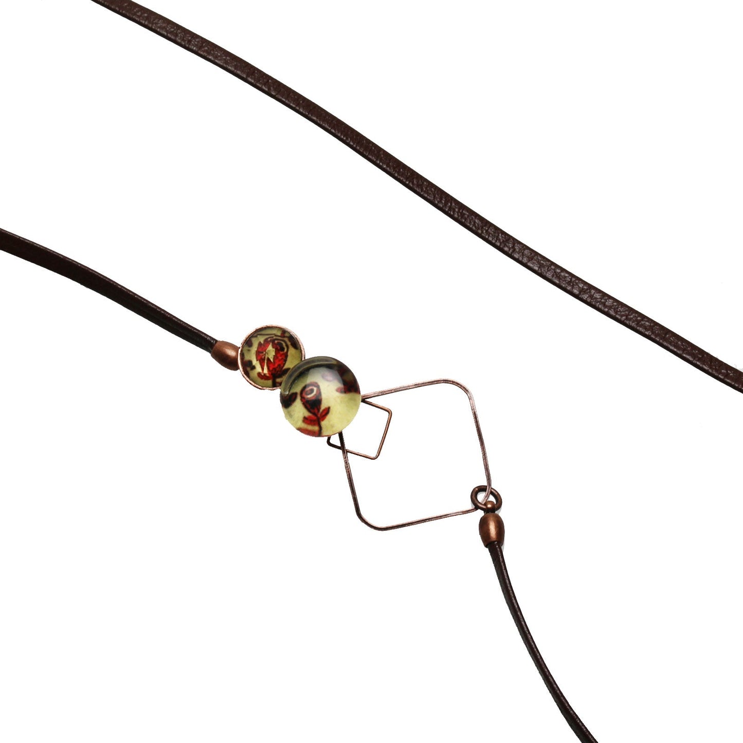Es una cadena de anteojos que utiliza partes de resina de "Forgetting Flower Series" (Rojo). Es un diseño asimétrico con decoraciones en un lado. Debido a que usa correas de cuero, es liviano y fácil de usar. Recomendado para el uso diario. También puedes quitarle el broche y usarlo como portagafas. No solo para colgar gafas, sino también para la individualidad y la moda.