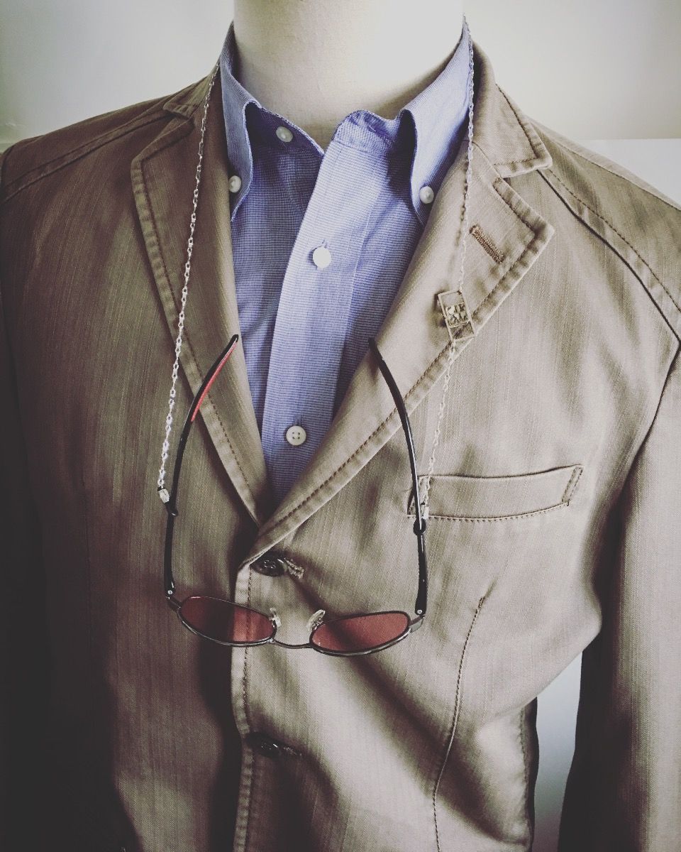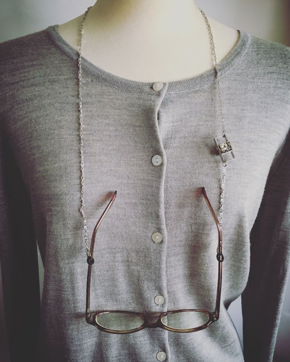 Los anteojos de sol y los anteojos para leer se ponen y se quitan con frecuencia, pero es una molestia guardarlos en un estuche y guardarlos en una bolsa cada vez que se los quita, y tiene que buscar a tientas en su bolso cuando los necesita. Muchas personas los usan en la cabeza como una capa, lo cual es genial, pero no me gusta la sensación de tirantez en mi cabeza. Solía pensar que usar una correa alrededor de mi cuello era un poco incómodo, pero cuando se trata de la incomodidad en mi cabeza vs. mi cuello, mi cabeza es más incómoda... así que durante muchos años usé una correa de gafas para "qué hacer cuando te la quitas".