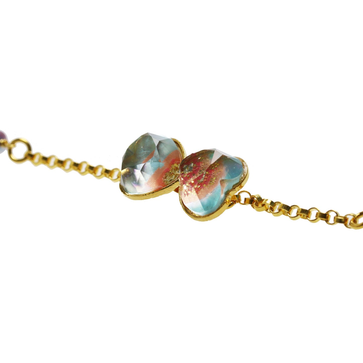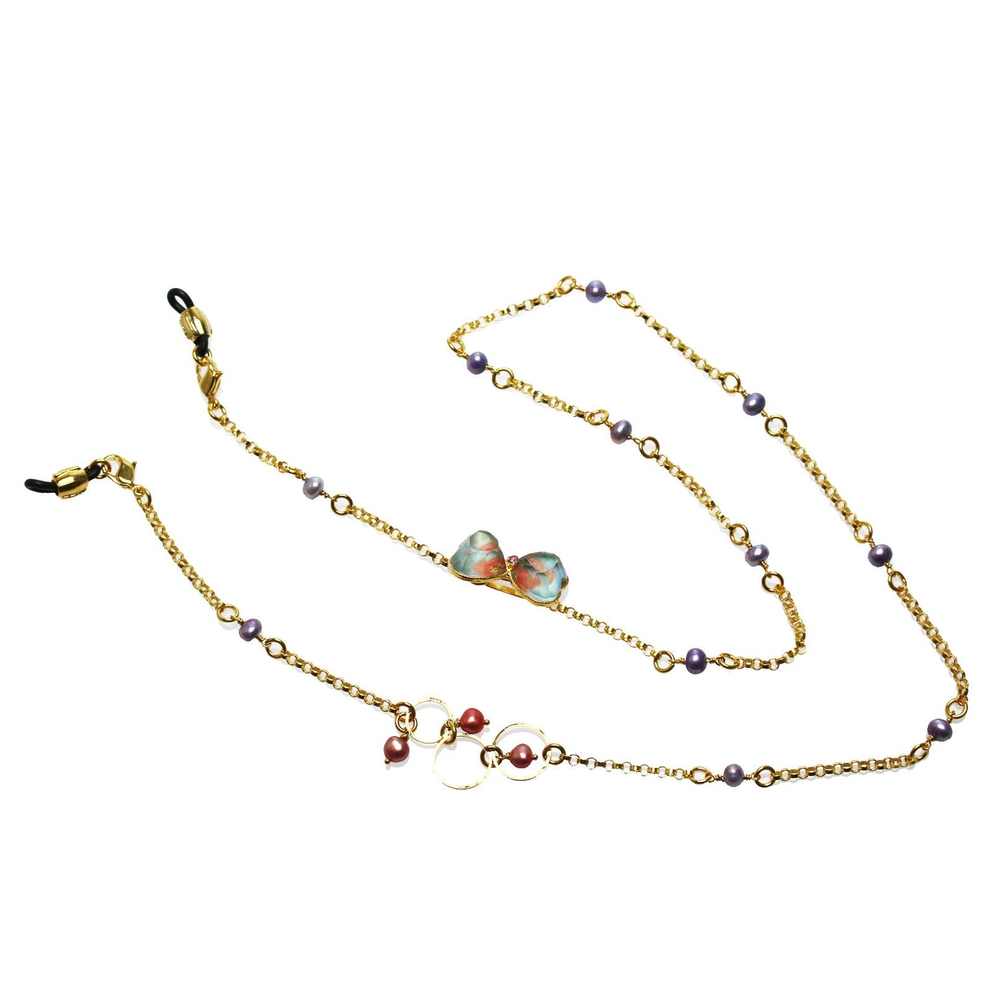 Collar Cadena Gafas Corazón Oro Azul Rosa