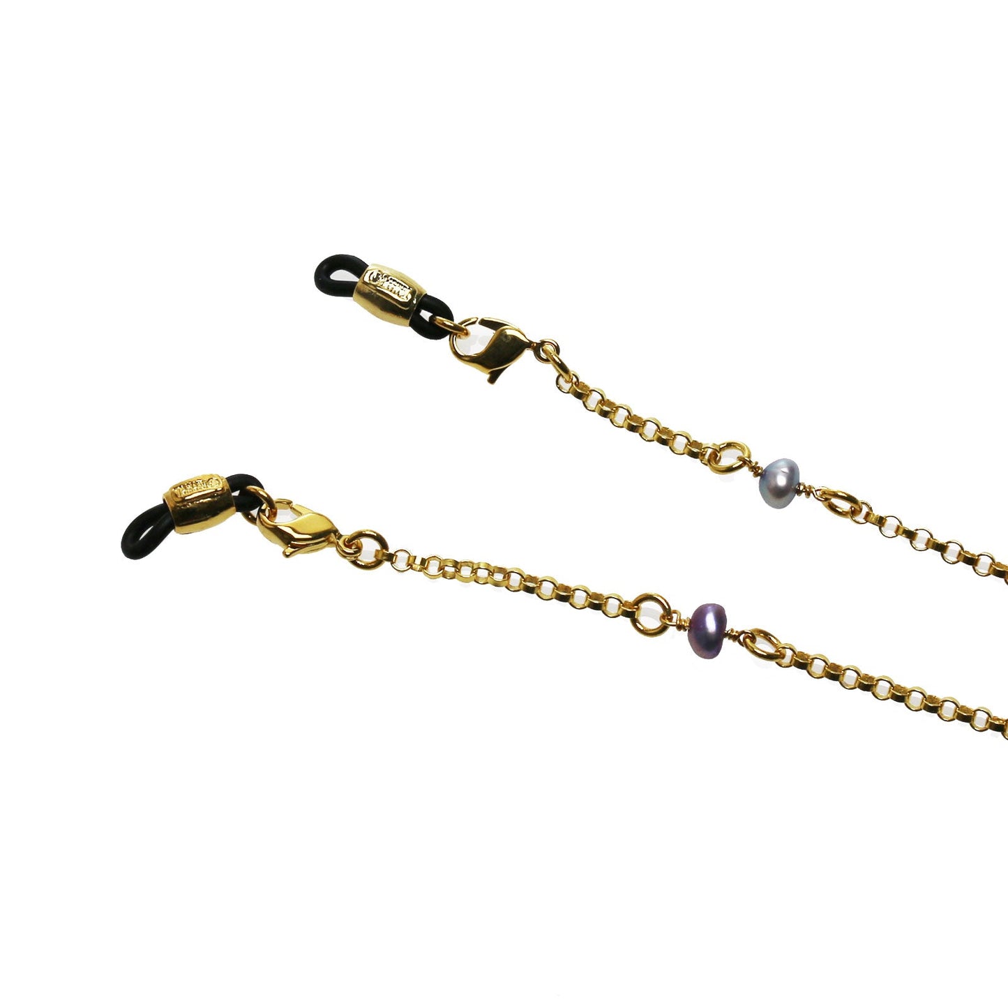 Los anteojos de sol y los anteojos para leer se ponen y se quitan con frecuencia, pero es una molestia guardarlos en un estuche y guardarlos en una bolsa cada vez que se los quita, y tiene que buscar a tientas en su bolso cuando los necesita. Muchas personas los usan en la cabeza como una capa, lo cual es genial, pero no me gusta la sensación de tirantez en mi cabeza. Solía pensar que usar una correa alrededor de mi cuello era un poco incómodo, pero cuando se trata de la incomodidad en mi cabeza vs. mi cuello, mi cabeza es más incómoda... así que durante muchos años usé una correa de gafas para "qué hacer cuando te la quitas".