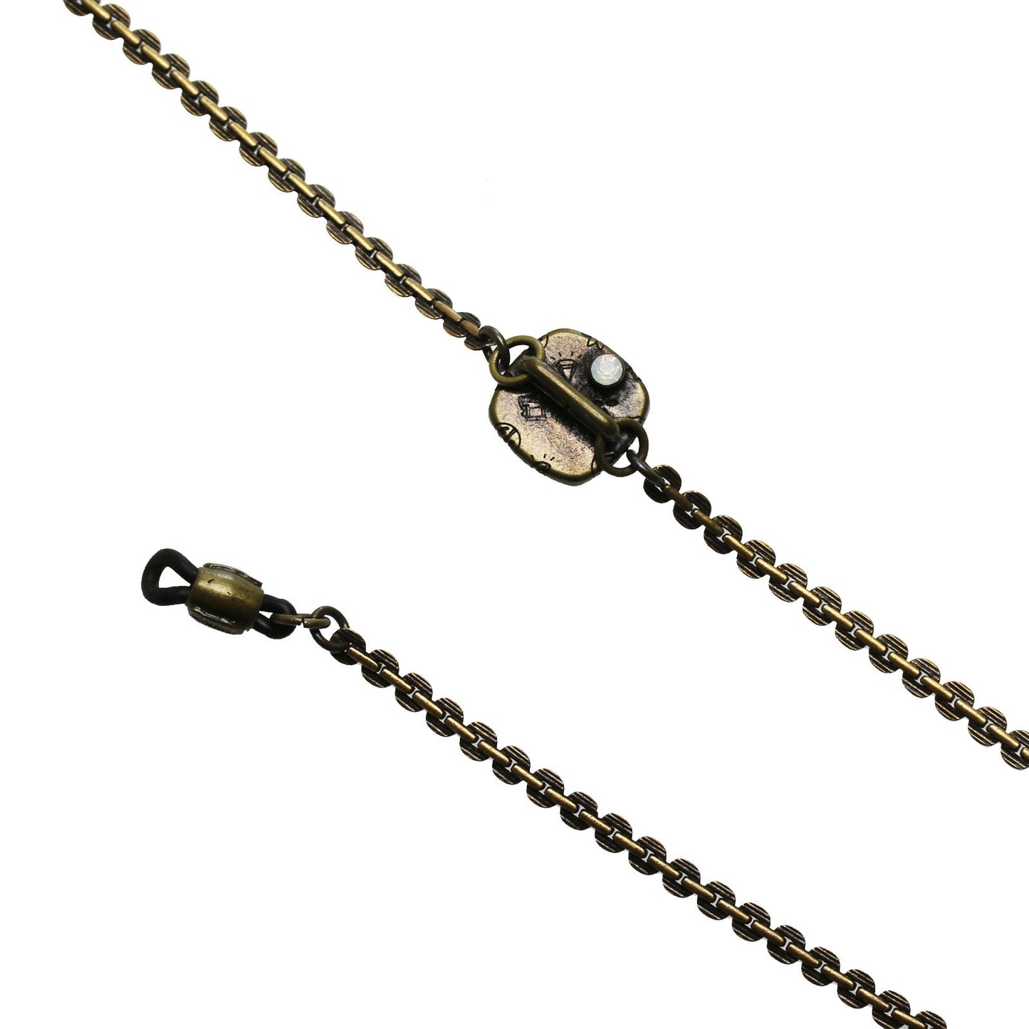 Los anteojos de sol y los anteojos para leer se ponen y se quitan con frecuencia, pero es una molestia guardarlos en un estuche y guardarlos en una bolsa cada vez que se los quita, y tiene que buscar a tientas en su bolso cuando los necesita. Muchas personas los usan en la cabeza como una capa, lo cual es genial, pero no me gusta la sensación de tirantez en mi cabeza. Solía pensar que usar una correa alrededor de mi cuello era un poco incómodo, pero cuando se trata de la incomodidad en mi cabeza vs. mi cuello, mi cabeza es más incómoda... así que durante muchos años usé una correa de gafas para "qué hacer cuando te la quitas".
