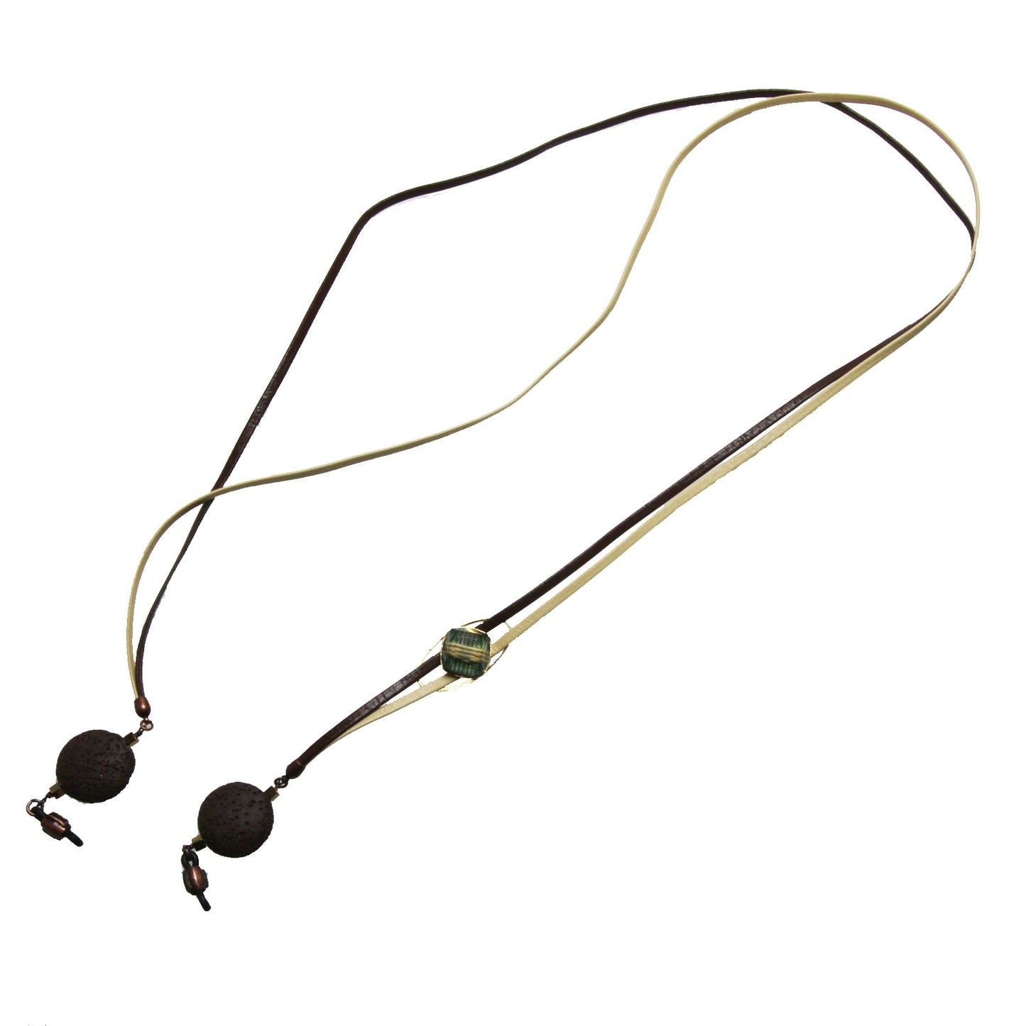 Los anteojos de sol y los anteojos para leer se ponen y se quitan con frecuencia, pero es una molestia guardarlos en un estuche y guardarlos en una bolsa cada vez que se los quita, y tiene que buscar a tientas en su bolso cuando los necesita. Muchas personas los usan en la cabeza como una capa, lo cual es genial, pero no me gusta la sensación de tirantez en mi cabeza. Solía pensar que usar una correa alrededor de mi cuello era un poco incómodo, pero cuando se trata de la incomodidad en mi cabeza vs. mi cuello, mi cabeza es más incómoda... así que durante muchos años usé una correa de gafas para "qué hacer cuando te la quitas".