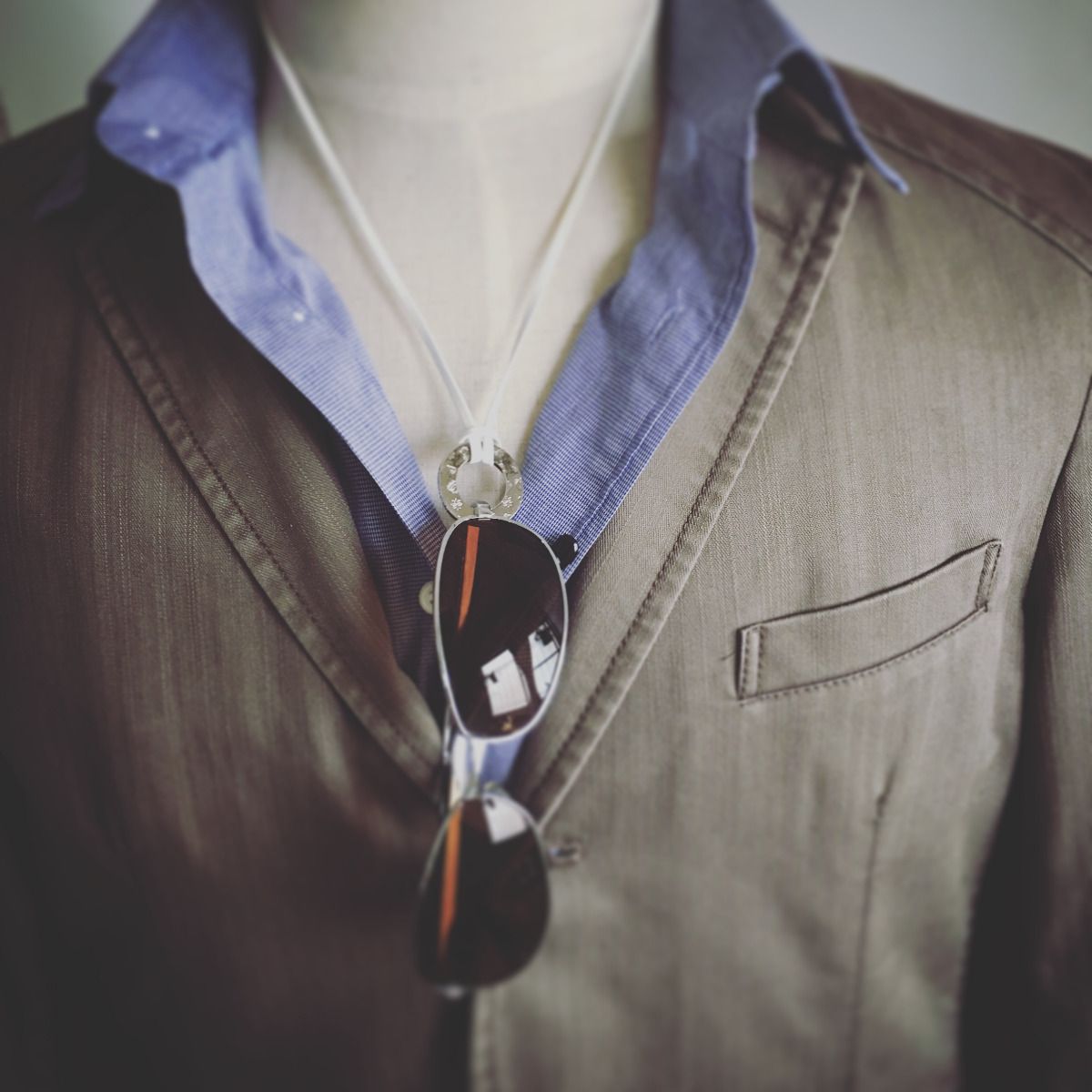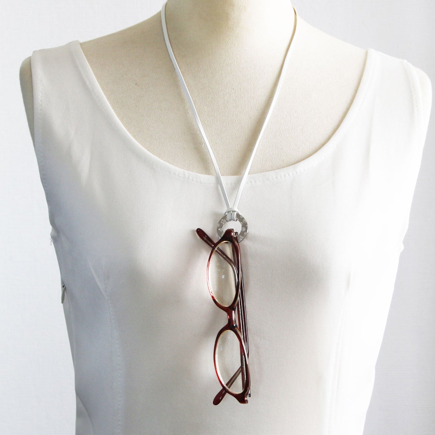 Los anteojos de sol y los anteojos para leer se ponen y se quitan con frecuencia, pero es una molestia guardarlos en un estuche y guardarlos en una bolsa cada vez que se los quita, y tiene que buscar a tientas en su bolso cuando los necesita. Muchas personas los usan en la cabeza como una capa, lo cual es genial, pero no me gusta la sensación de tirantez en mi cabeza. Solía pensar que usar una correa alrededor de mi cuello era un poco incómodo, pero cuando se trata de la incomodidad en mi cabeza vs. mi cuello, mi cabeza es más incómoda... así que durante muchos años usé una correa de gafas para "qué hacer cuando te la quitas".