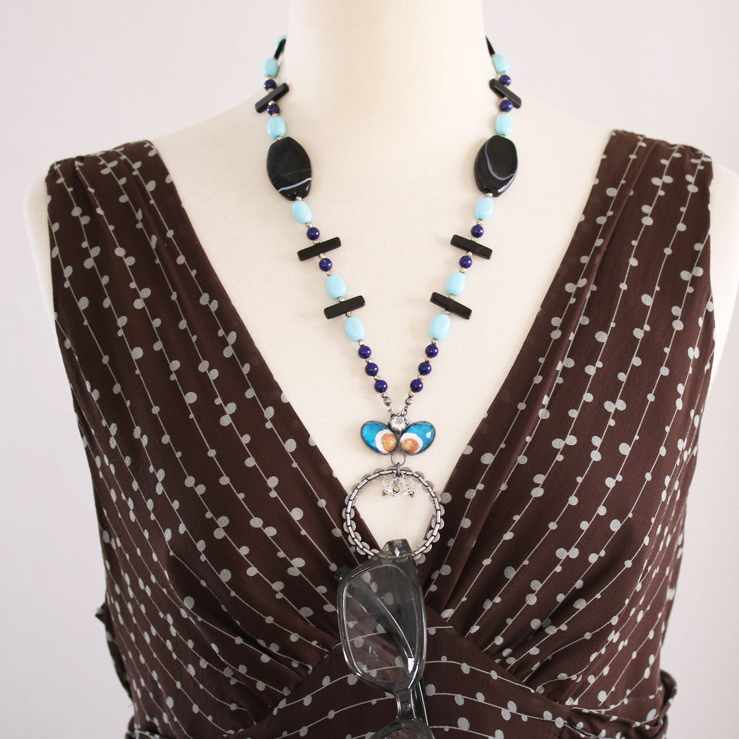 Soporte para anteojos Tibet Agate Onyx Hematite Blue