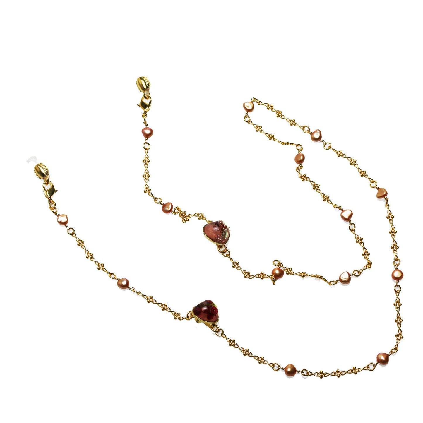 Es un collar de cadena de anteojos que utiliza piezas de resina tipo corazón de "Candy Series" (Rosa) "Jewelry Box Series" (Rosa). Combinamos una perla de agua dulce en la cadena de oro. También puedes usarlo como collar conectando la parte del broche. Se recomienda no solo para colgar gafas, sino también como un artículo de moda único. También se recomienda para un regalo de 60 años.