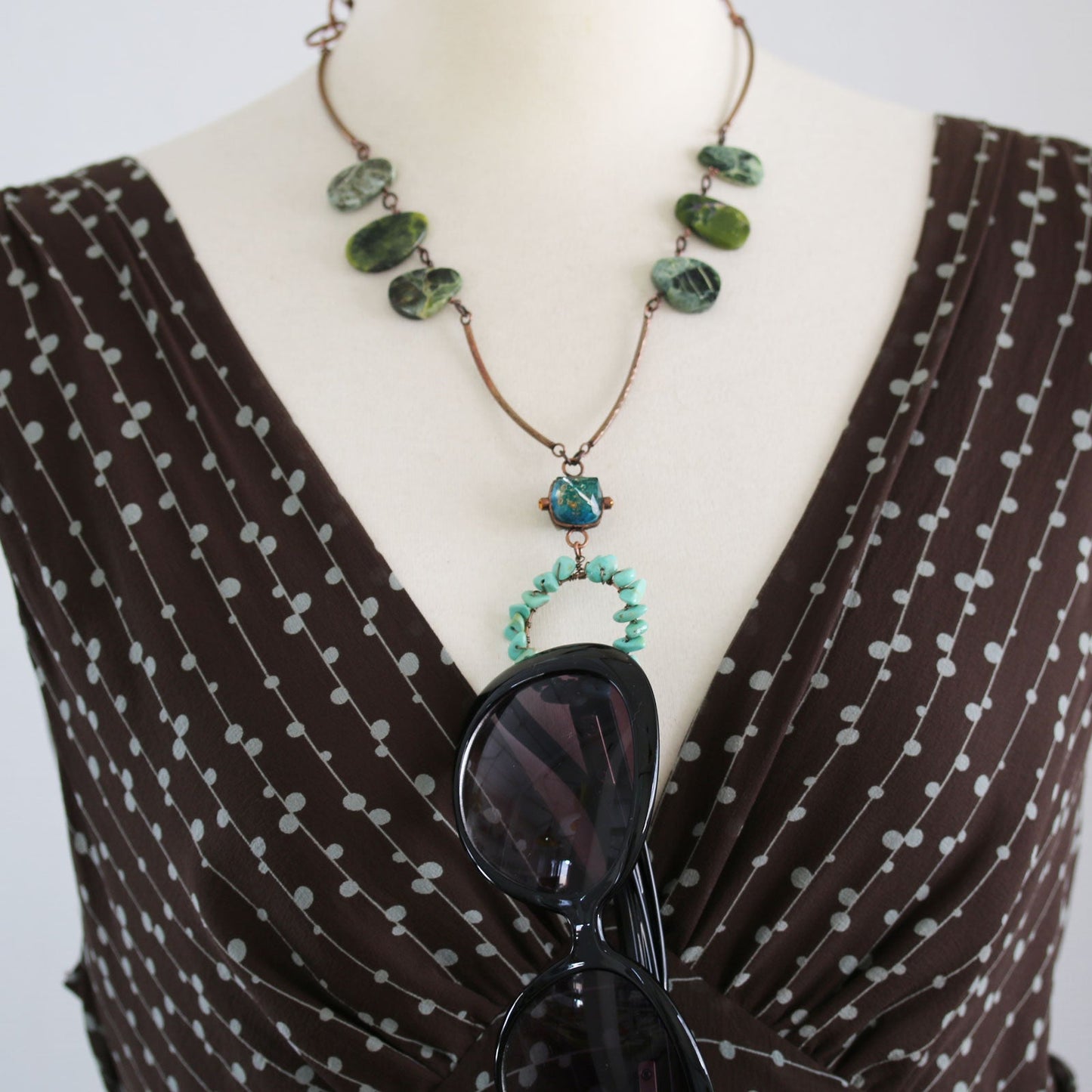 Los anteojos de sol y los anteojos para leer se ponen y se quitan con frecuencia, pero es una molestia guardarlos en un estuche y guardarlos en una bolsa cada vez que se los quita, y tiene que buscar a tientas en su bolso cuando los necesita. Muchas personas los usan en la cabeza como una capa, lo cual es genial, pero no me gusta la sensación de tirantez en mi cabeza. Solía pensar que usar una correa alrededor de mi cuello era un poco incómodo, pero cuando se trata de la incomodidad en mi cabeza vs. mi cuello, mi cabeza es más incómoda... así que durante muchos años usé una correa de gafas para "qué hacer cuando te la quitas".