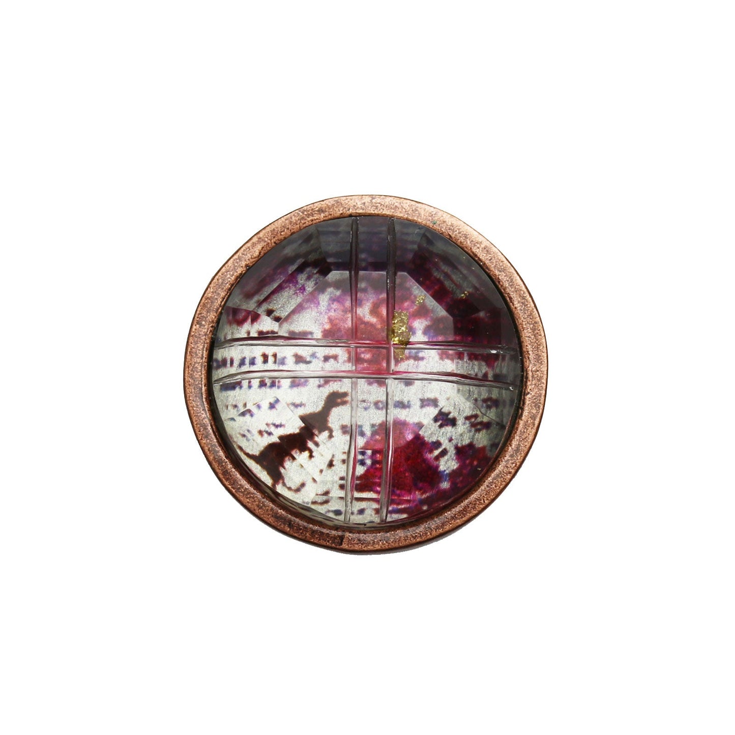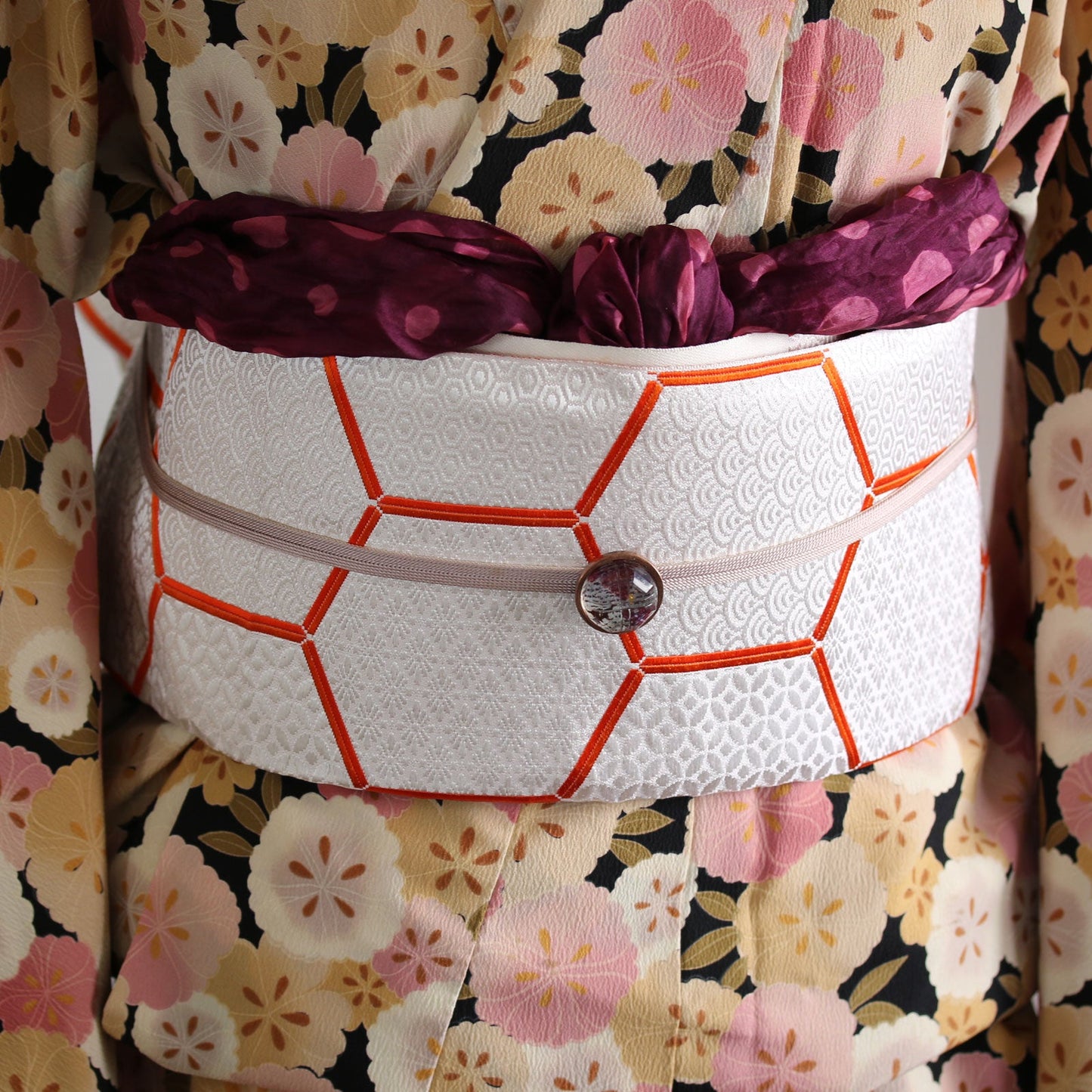 It is a Obidome using resin parts of the "Dinosaur Series" (Purple). You can see a black dinosaur when you look closely with a silvery color with reddish purple patterns in chic hues. Resin parts with incisions such as faceted glass are fashionable designs that make the transparency more conspicuous. It is recommended for casual and unique accent of the belt. *Japanese Kimono accessories "Obidome" refers to an accessory passed through 'Obijime'(a string tied around the waist to fix obi).