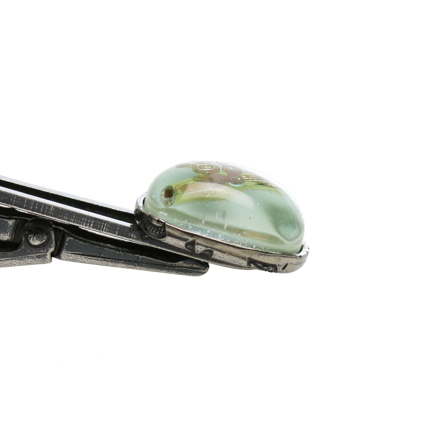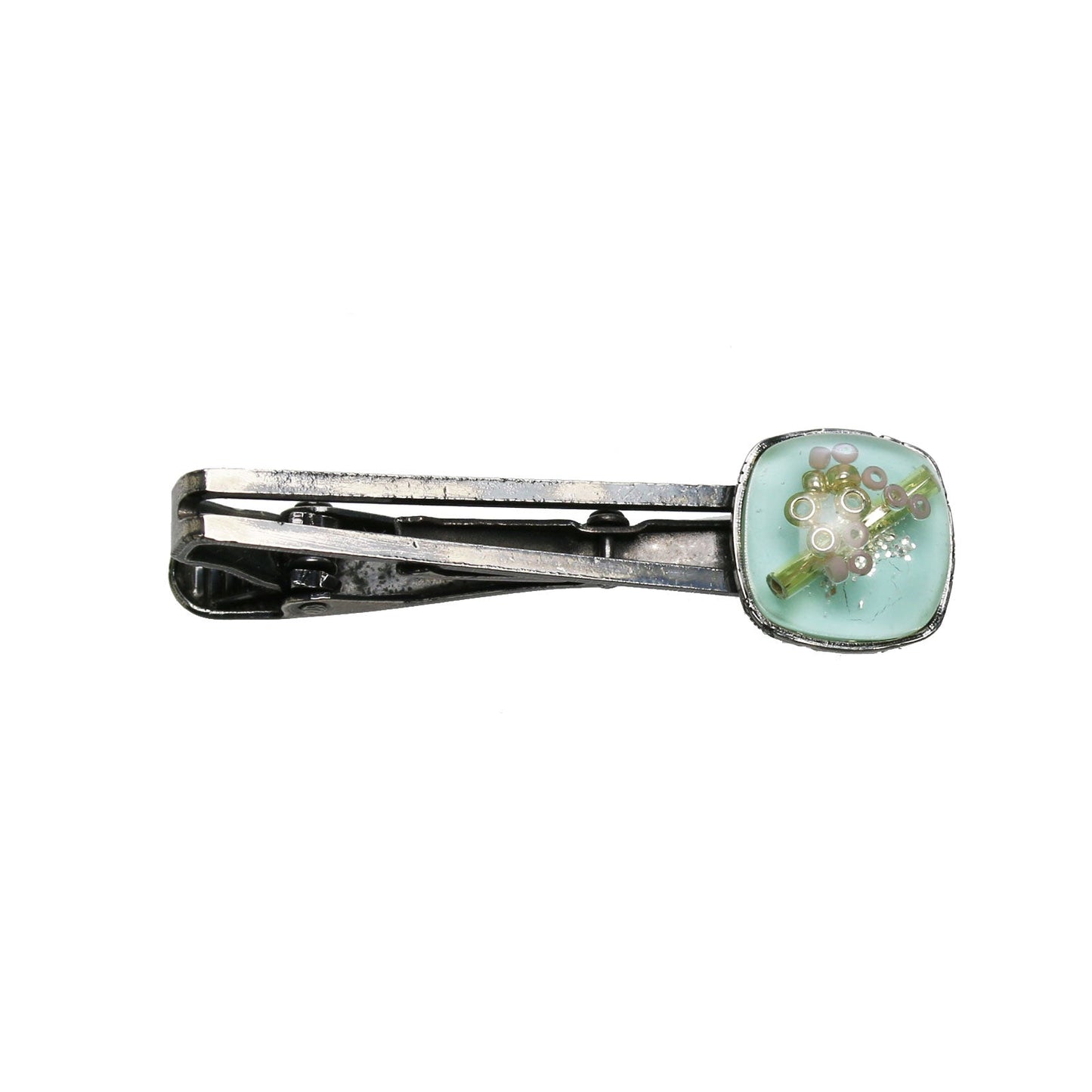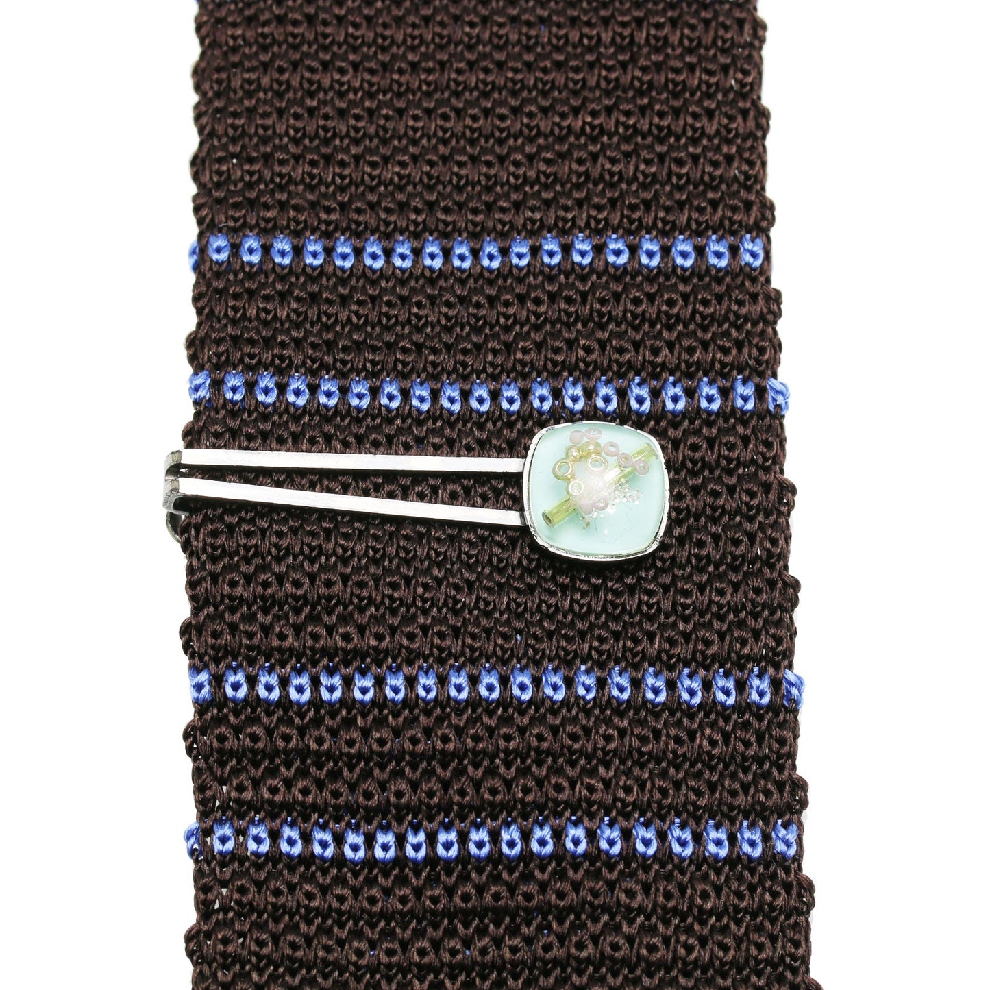 It is a simple tie clip with square resin parts of "Jewel Box Series" (Blue). A beautiful light blue color is a fashionable design that attracts eyes. You can enjoy the fashion of a unique tie. Resin parts and metal parts are handmade.