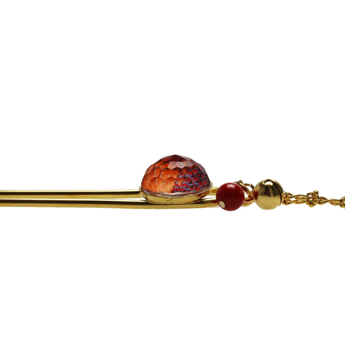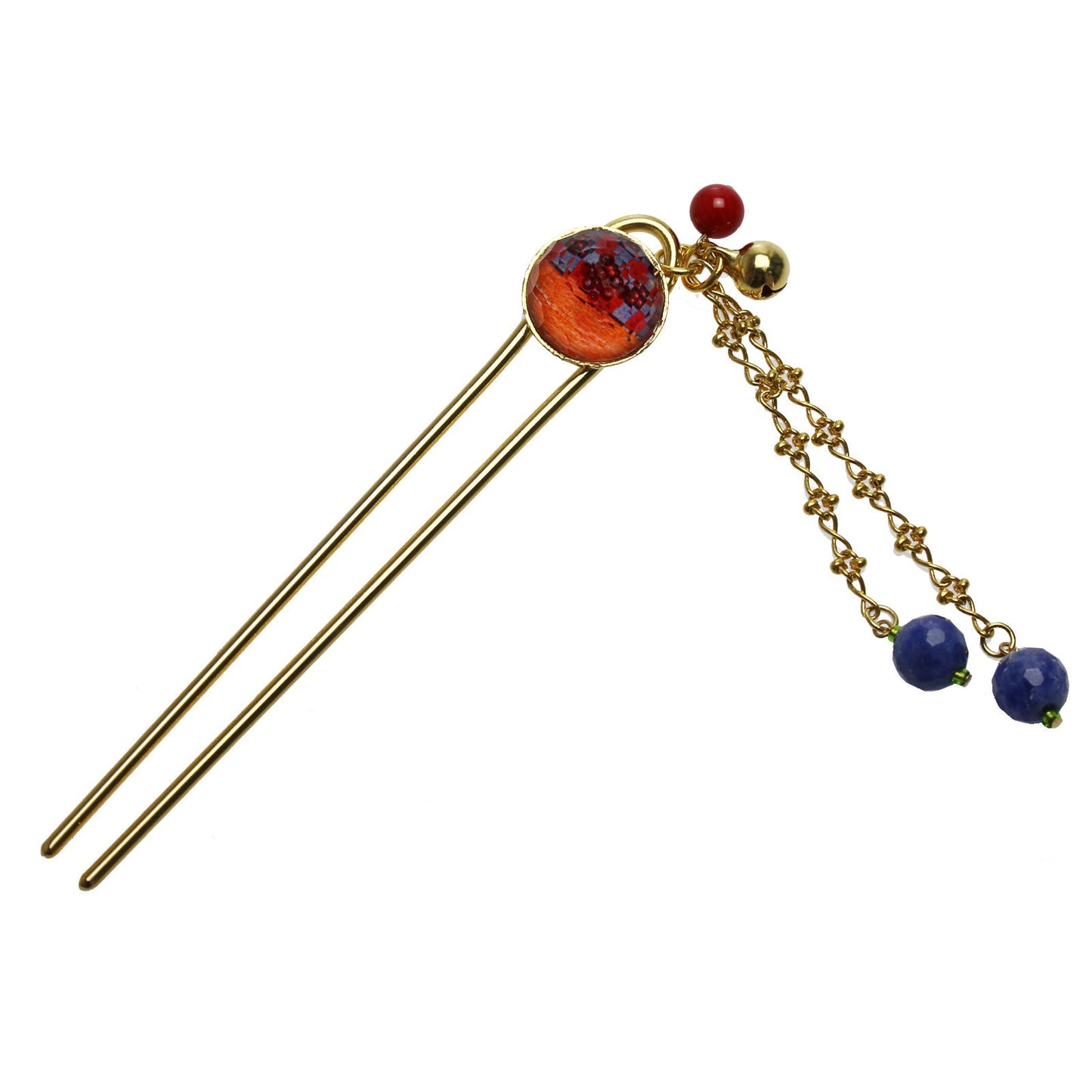 Es una barra para el cabello de doble punta que utiliza partes redondas de resina de "Carpet Series" (naranja). Es un diseño único que corales y sodalita que hacen juego con el color de la resina, las campanas se agitan.
