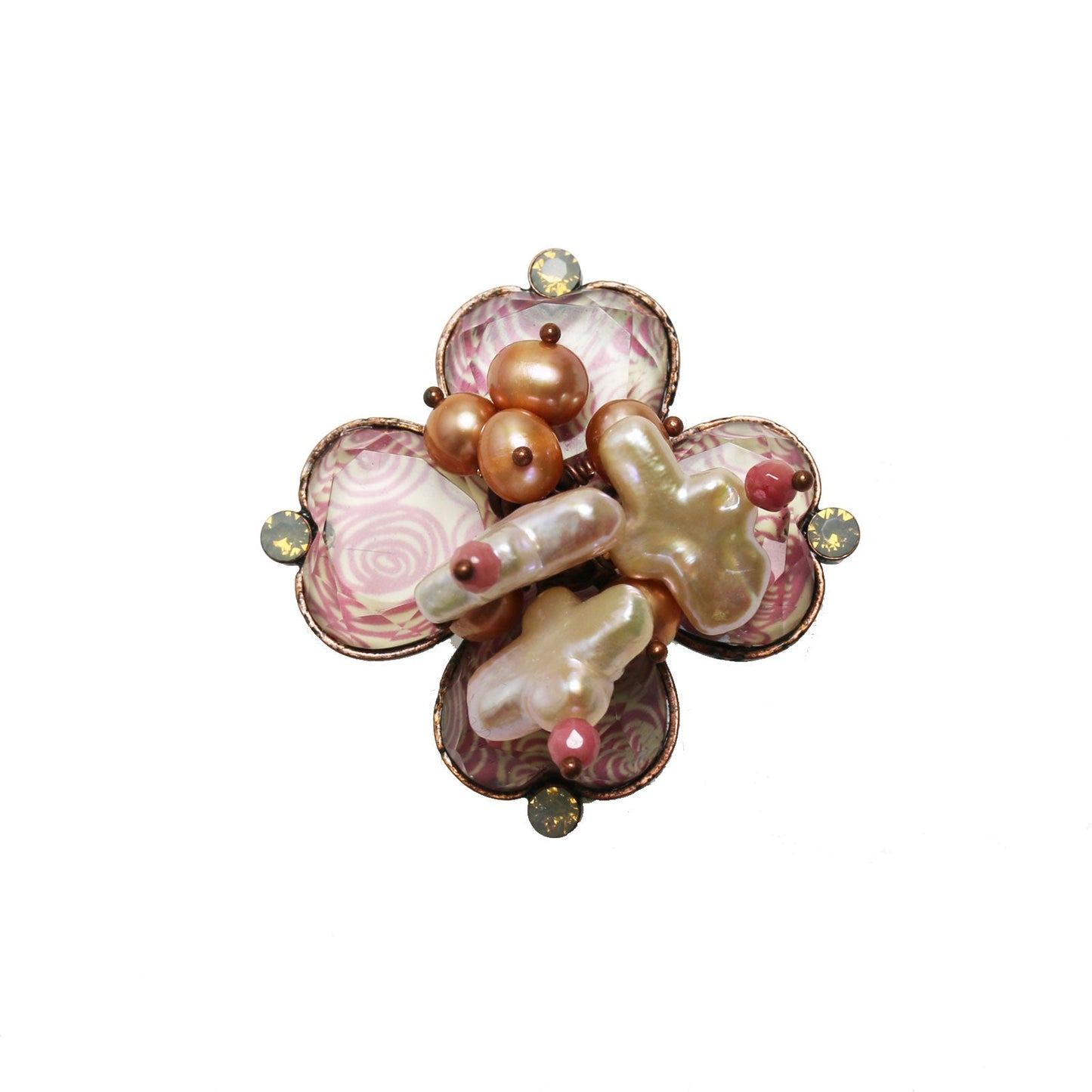 Broche Trébol Rosa Perla de agua dulce Vortex
