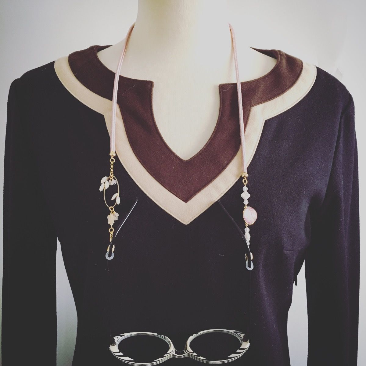 Los anteojos de sol y los anteojos para leer se ponen y se quitan con frecuencia, pero es una molestia guardarlos en un estuche y guardarlos en una bolsa cada vez que se los quita, y tiene que buscar a tientas en su bolso cuando los necesita. Muchas personas los usan en la cabeza como una capa, lo cual es genial, pero no me gusta la sensación de tirantez en mi cabeza. Solía pensar que usar una correa alrededor de mi cuello era un poco incómodo, pero cuando se trata de la incomodidad en mi cabeza vs. mi cuello, mi cabeza es más incómoda... así que durante muchos años usé una correa de gafas para "qué hacer cuando te la quitas".