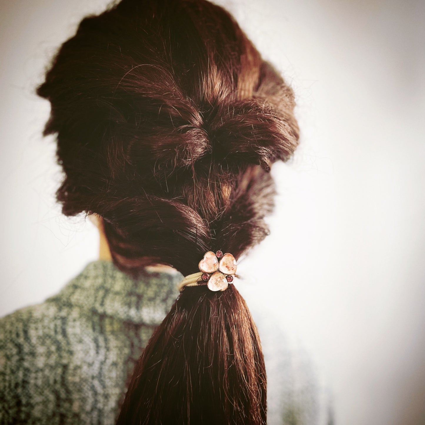 Es un hermoso elástico para el cabello que utiliza partes de resina de "Plum Cake Series" (Rosa). Es un hermoso diseño que brilla en rosa brillante en tu cabello. Magnífico acento de up do.