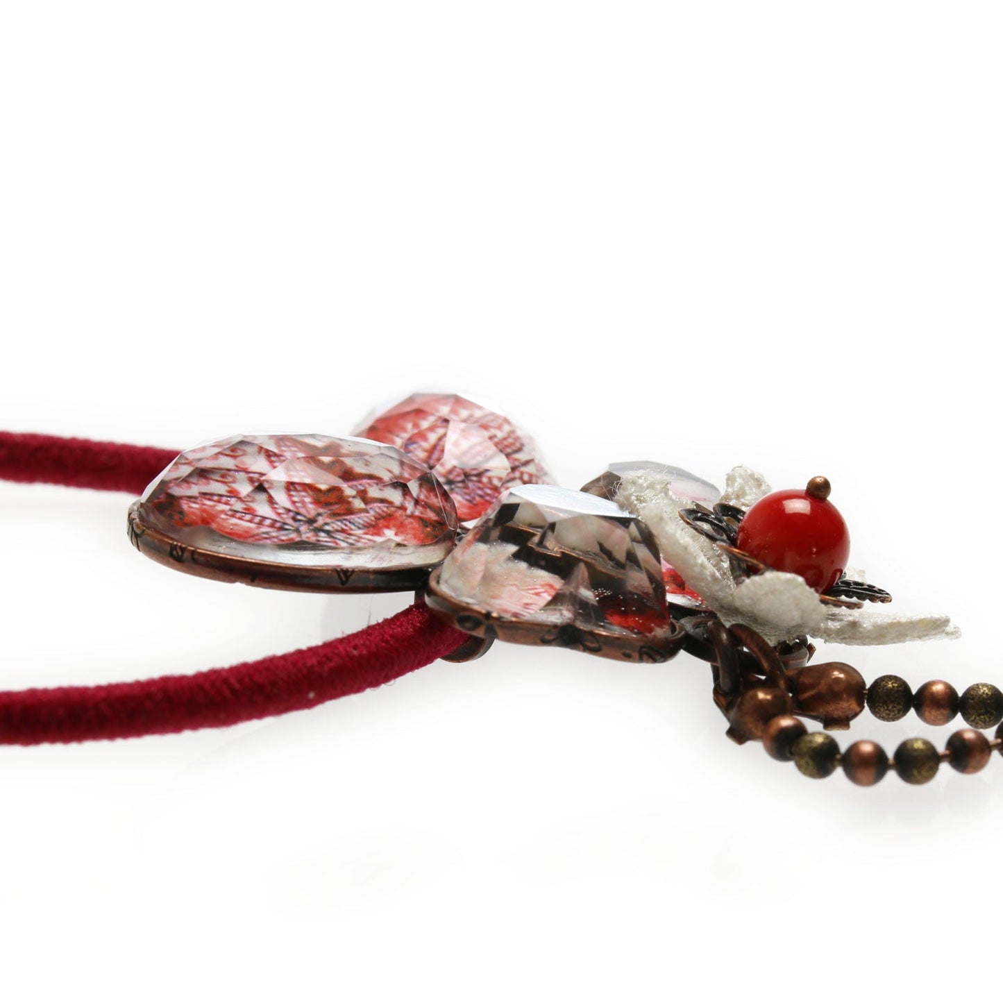 Es un hermoso elástico para el cabello de la "Serie Lily (Rojo)" hecho de resina. Fue una combinación de flores de encaje y cadena de bolitas que sirvió con coral. Con esto solo casualmente juntos estarán a la moda. Se recomienda para el acento casual del peinado.