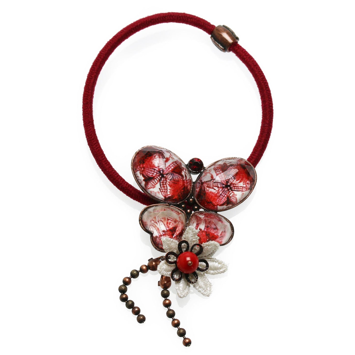 Pelo Elástico Mariposa Encaje Rojo Flor