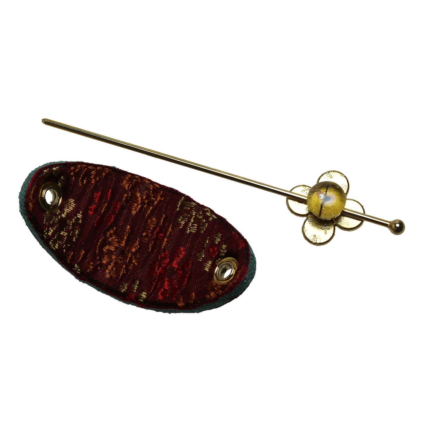 Es un pasador de horquilla de la "Serie Splattered" y la "Serie Vine" (Oro + Azul). Está realizado con piezas alternas de resina en forma de flor. Tiene un diseño elaborado con una base de fieltro comprimido cubierta con tela de seda envuelta con una cinta en el lateral. También puede ser utilizado por sólo una barra de pelo.