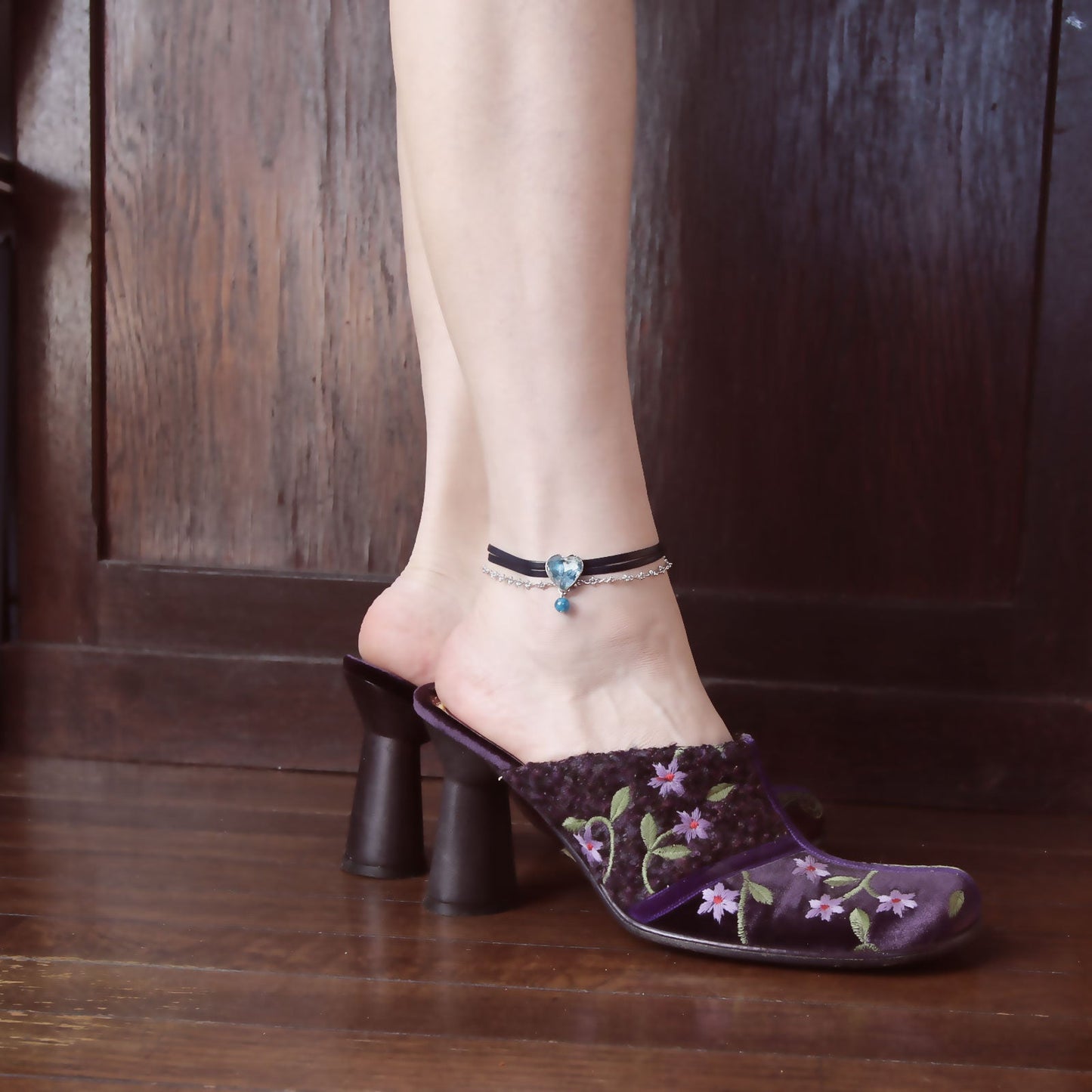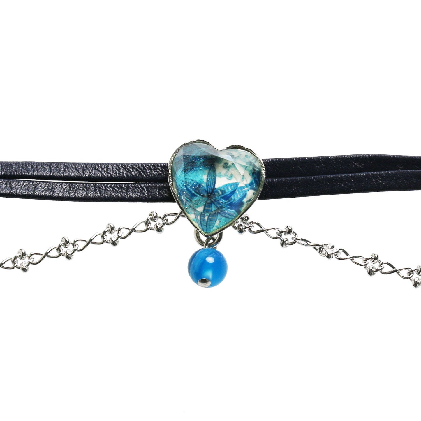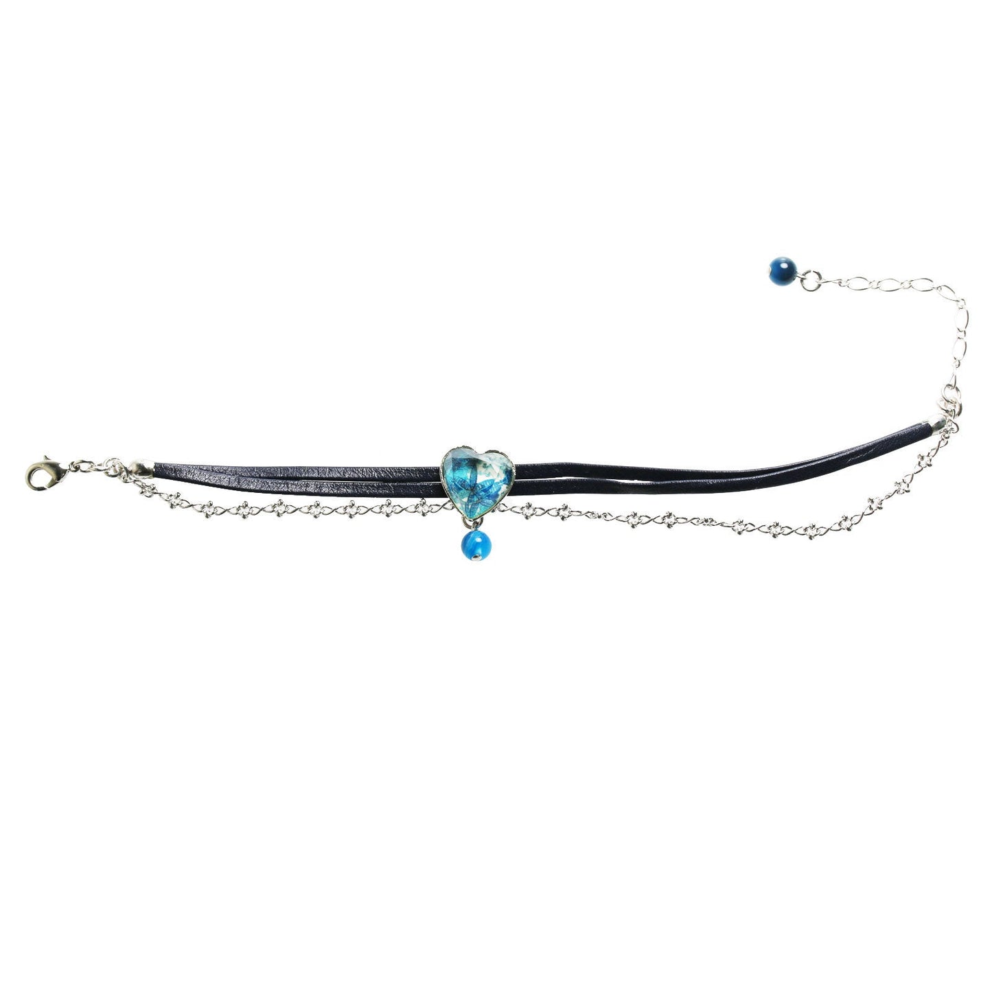 Tobillera Cuero Ágata Corazón Azul