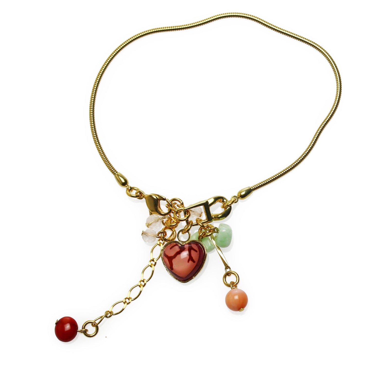 Tobillera Coral Rosa Corazón Cadena Oro