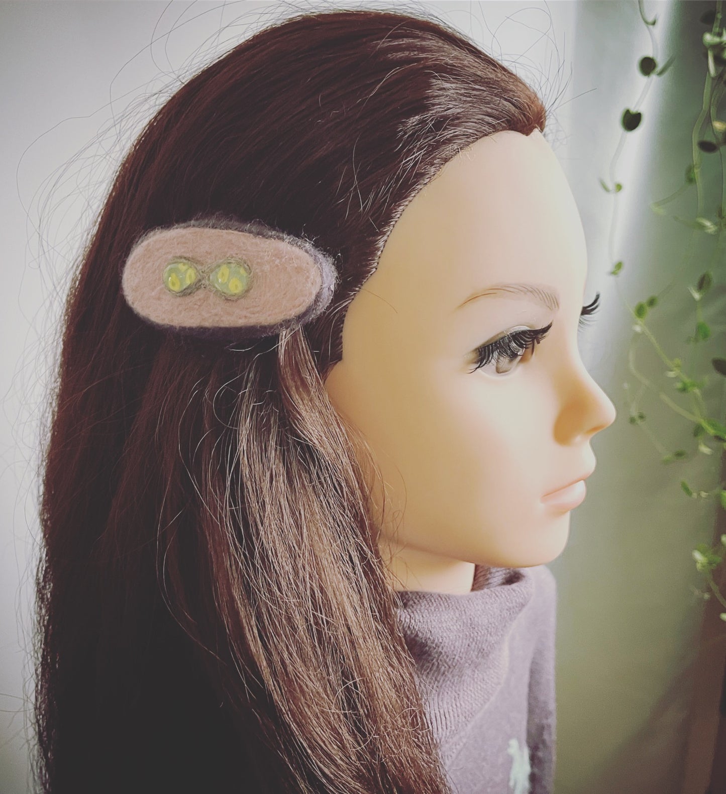 Es un pasador de estilo japonés que utiliza las partes de resina de la "Serie Fawn" (Azul). Tiene un color encantador y se ve atractivo en tu peinado. Se enfieltra al fieltro comprimido usando la lana y una aguja. Tiene un diseño cálido. Viene con una caja de flores para el almacenamiento.
