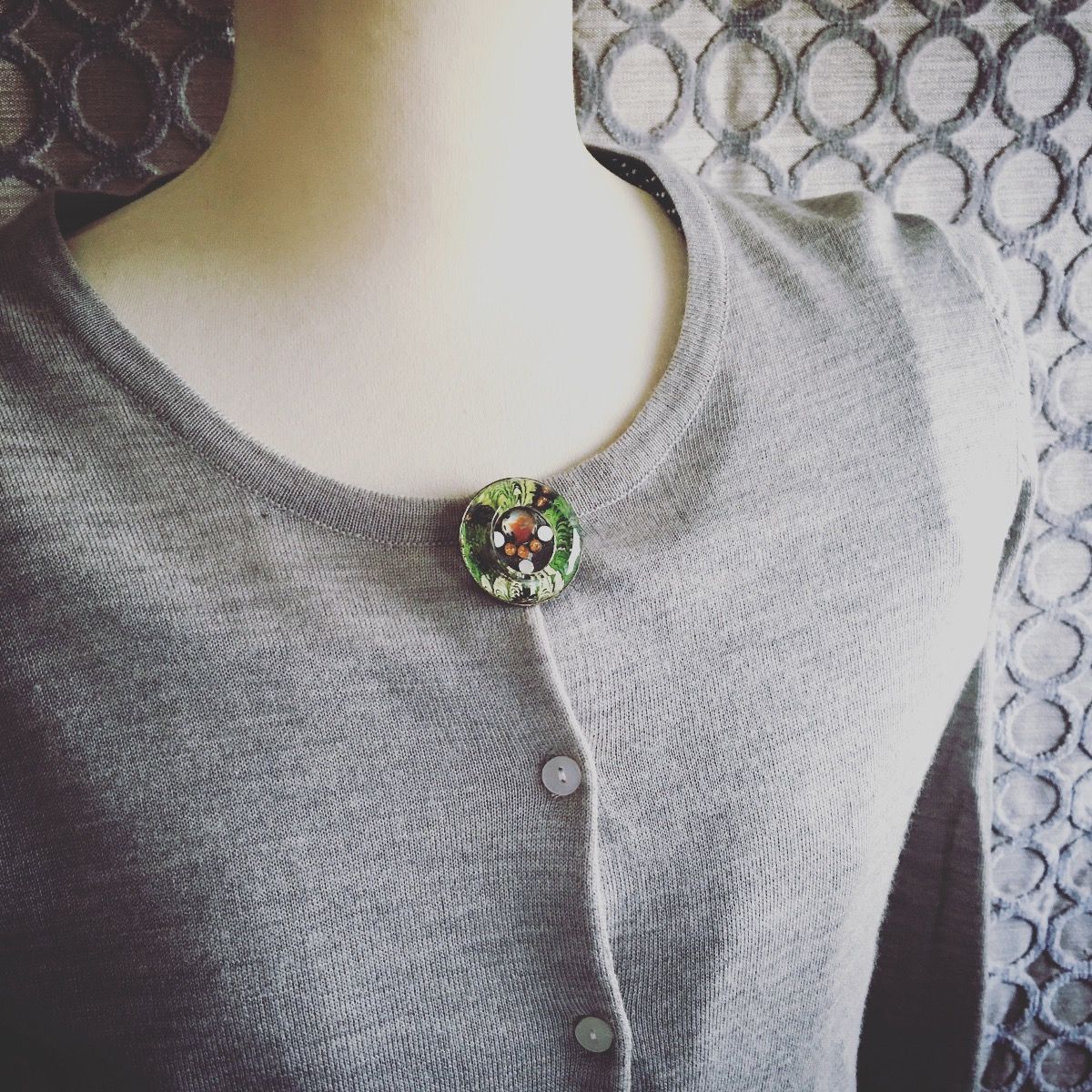 Es un broche que utiliza piezas de resina de la "Serie Mármol" (Verde). Atrae los ojos con sombras únicas. Al acento individual del cofre. A diferencia del cristal es un punto muy bueno para no agrietarse aunque se caiga.