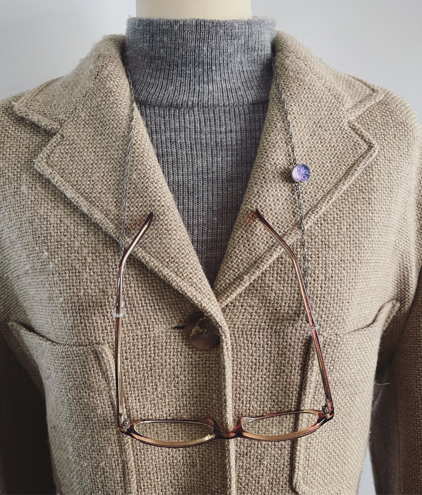 Los anteojos de sol y los anteojos para leer se ponen y se quitan con frecuencia, pero es una molestia guardarlos en un estuche y guardarlos en una bolsa cada vez que se los quita, y tiene que buscar a tientas en su bolso cuando los necesita. Muchas personas los usan en la cabeza como una capa, lo cual es genial, pero no me gusta la sensación de tirantez en mi cabeza. Solía pensar que usar una correa alrededor de mi cuello era un poco incómodo, pero cuando se trata de la incomodidad en mi cabeza vs. mi cuello, mi cabeza es más incómoda... así que durante muchos años usé una correa de gafas para "qué hacer cuando te la quitas".
