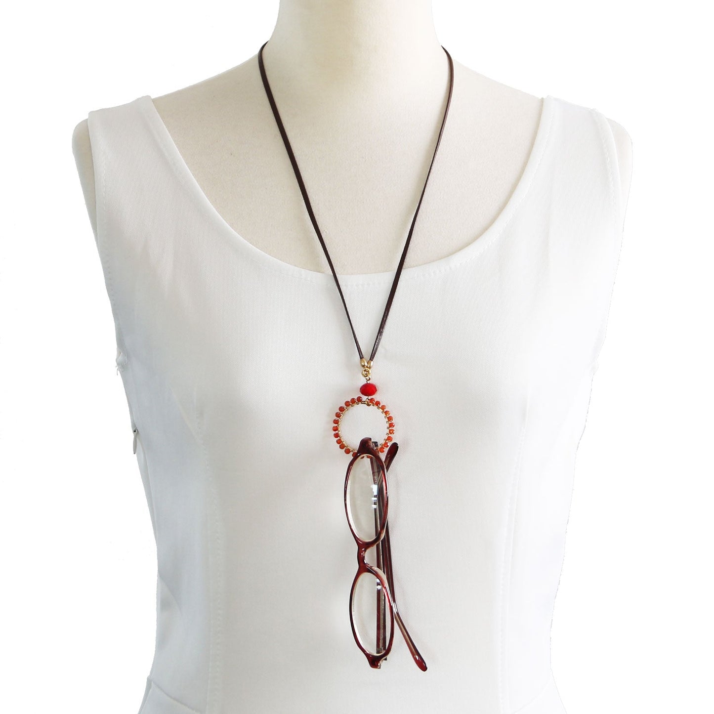 Se trata de un portagafas que utiliza piezas de resina de la "Serie Arco Iris" (Naranja). Utilice sus anteojos en la parte del anillo de tejido de cornalina naranja. Puedes usarlo como un collar ordinario sin colgar gafas. Es un tipo de 2 vías que también se puede usar como collar con piezas de resina de colores del arcoíris en el frente. Corresponde al ancho de la patilla (parte del brazo de las gafas) de 2,6 cm o menos.