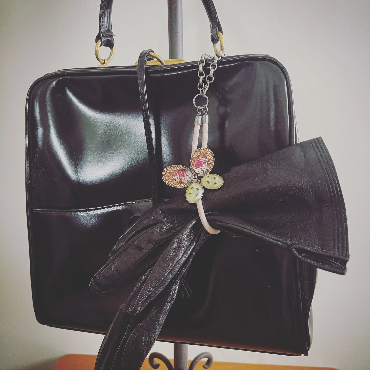 Puede recuperar rápidamente los guantes que tienden a perderse recortándolos. Para usar, deslice el guante a través del anillo de goma y hacia la parte principal para sujetarlo de forma segura. Puede usarlo no solo como soporte para guantes, sino también como dije para bolso.