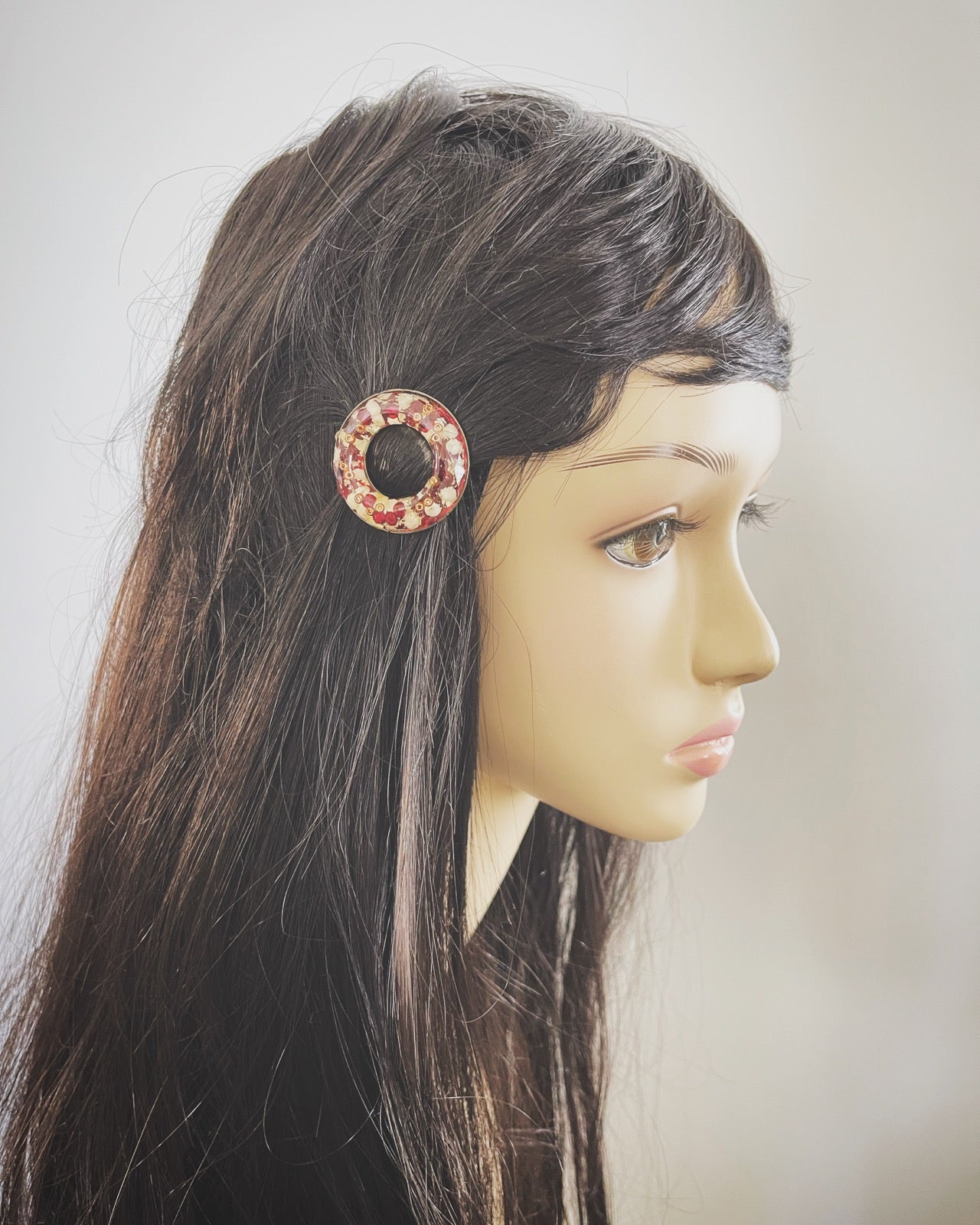 Pinza para el pelo Donut con cuentas rojas