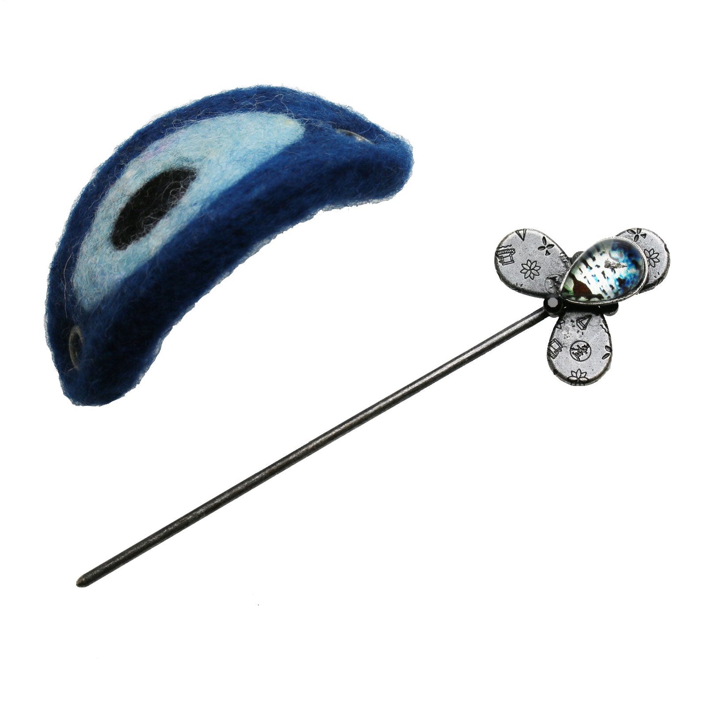 Es un pasador de horquilla que utiliza piezas de resina de la "Serie Dinosaurio" (Azul Marino). Es un diseño de tipo de 2 vías que también se puede utilizar como gancho. Va bien con el peinado del kimono japonés. Al acento individual del peinado por favor. Recomendamos empacar con caucho y luego retenerlo. La parte del fieltro es un fieltro acabado en fieltro de lana acabado mediante una técnica llamada fieltrado.