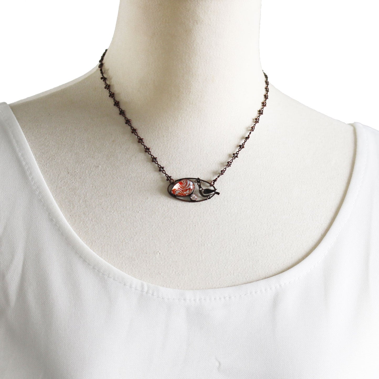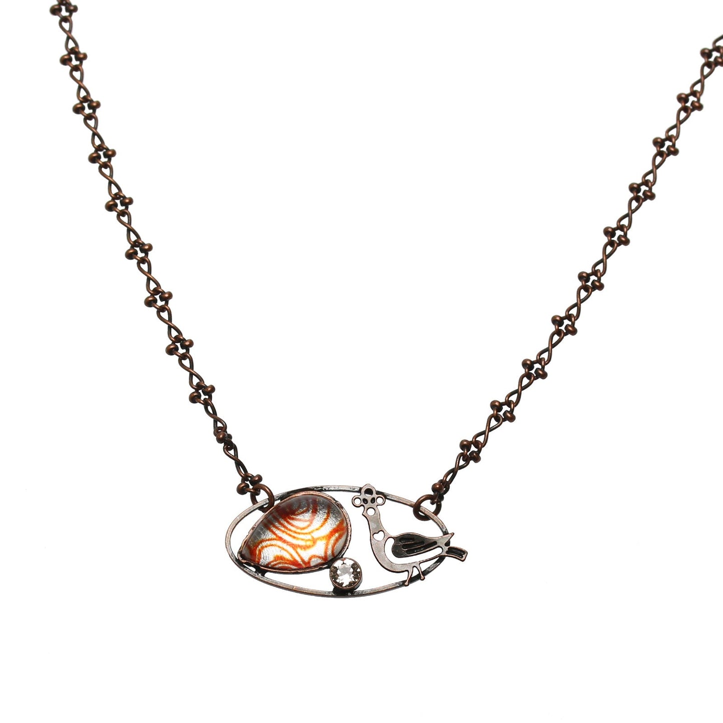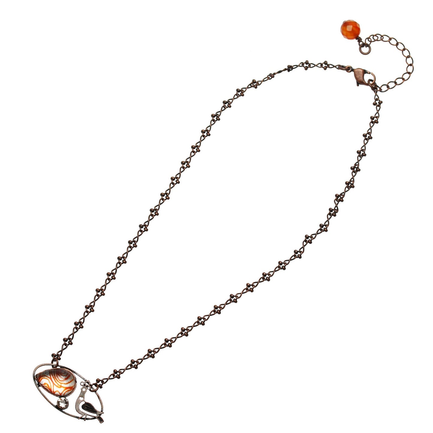 It is a necklace using resin parts of "Vortex Series" (Orange). Chains like small flowers connected and small birds are accent for casual and unique accent. We attached a carnelian to the adjuster.