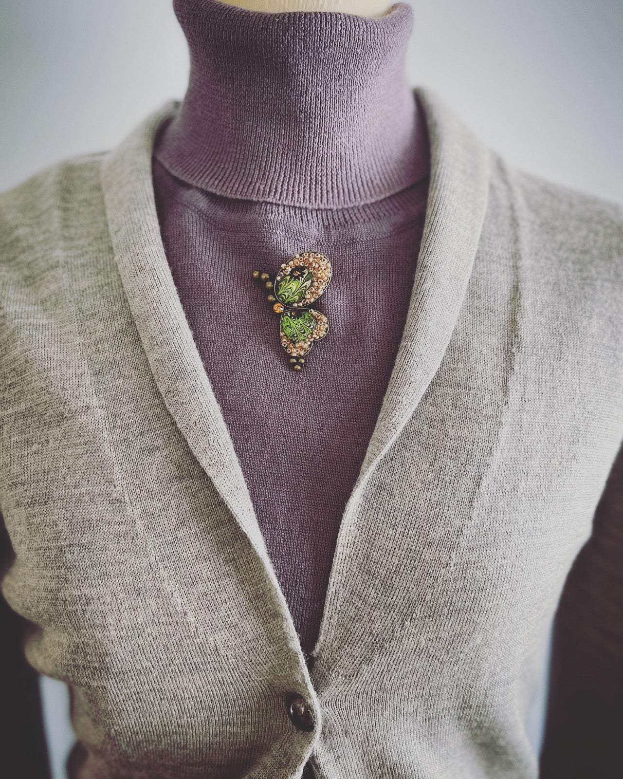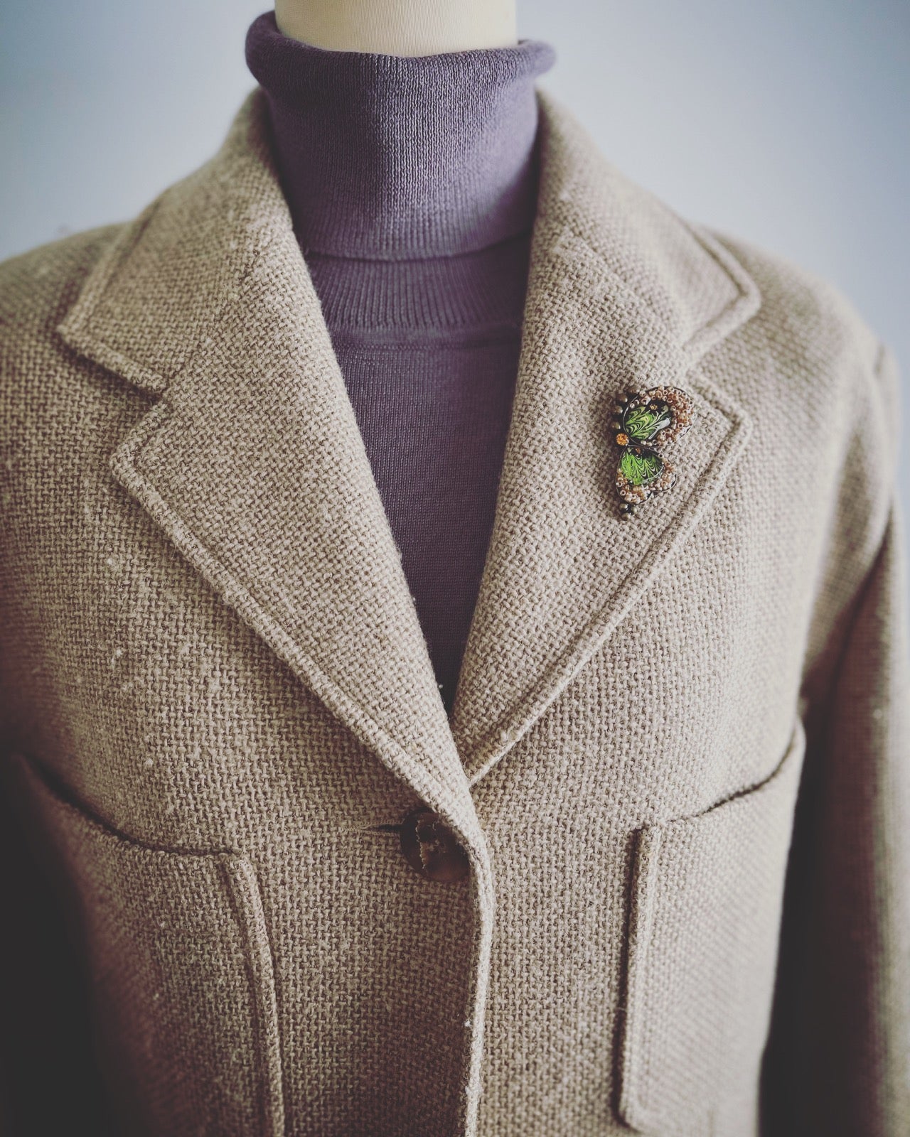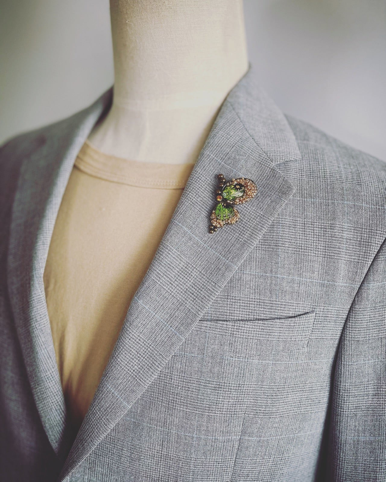 It is a brooch using resin parts of "Marble Series" (Green). It attracts the eye in a unique shape and color. For the casual accent of the chest please.