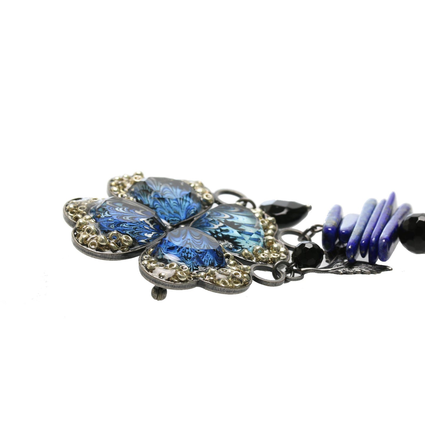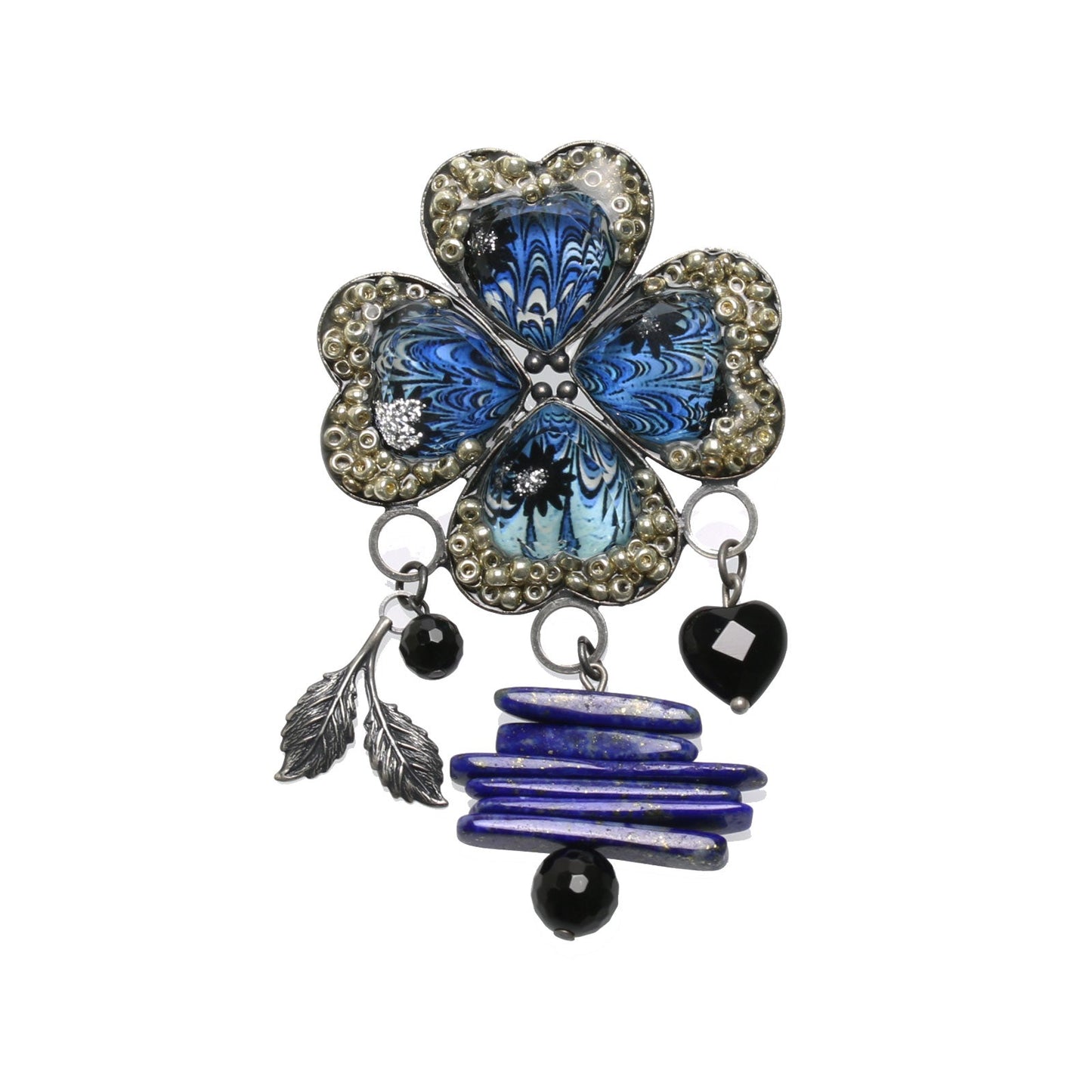 It is a brooch using resin parts of "Marble Series" (Blue). Recommended for accent of jacket collar and simple clothes. Resin parts and metal parts are handmade.