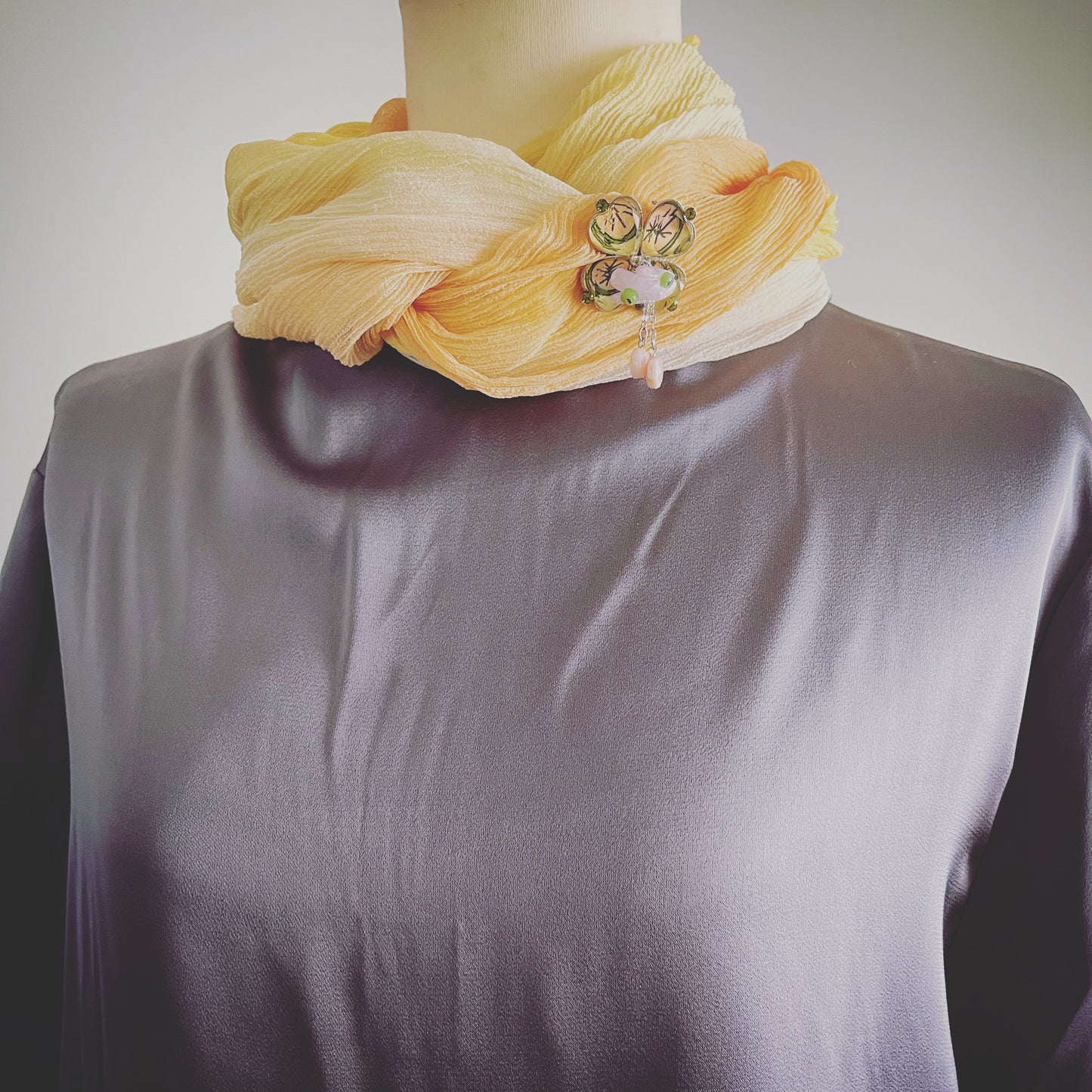 Featured in the TAMARUSAN JOURNAL”How to fasten a scarf using a brooch”