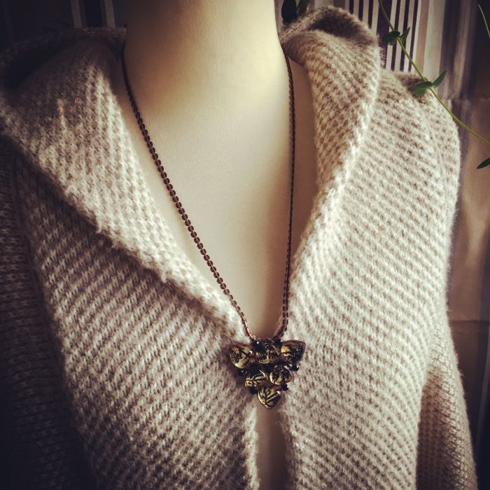 It is a brooch necklace using resin parts of "Backyard Series". It is easy to coordinate with chic shades. It is a 2-way type which becomes a brooch or a necklace. Let's be a unique accent of the chest.