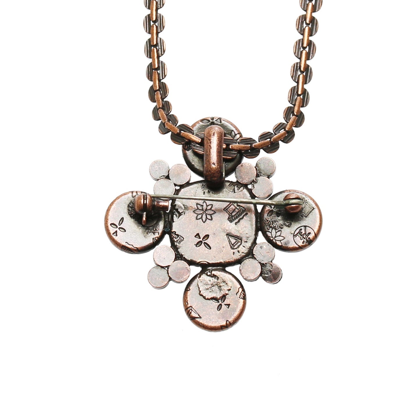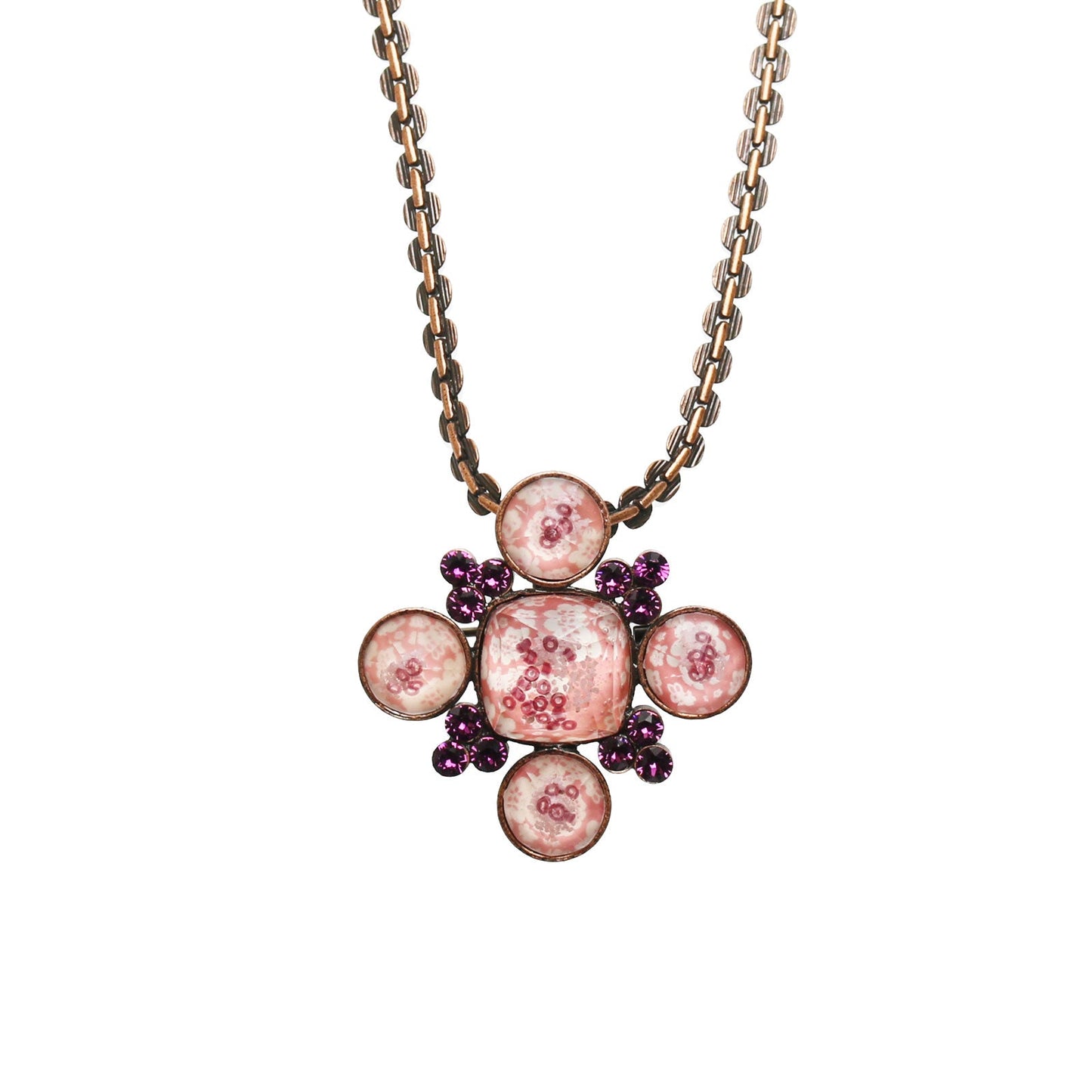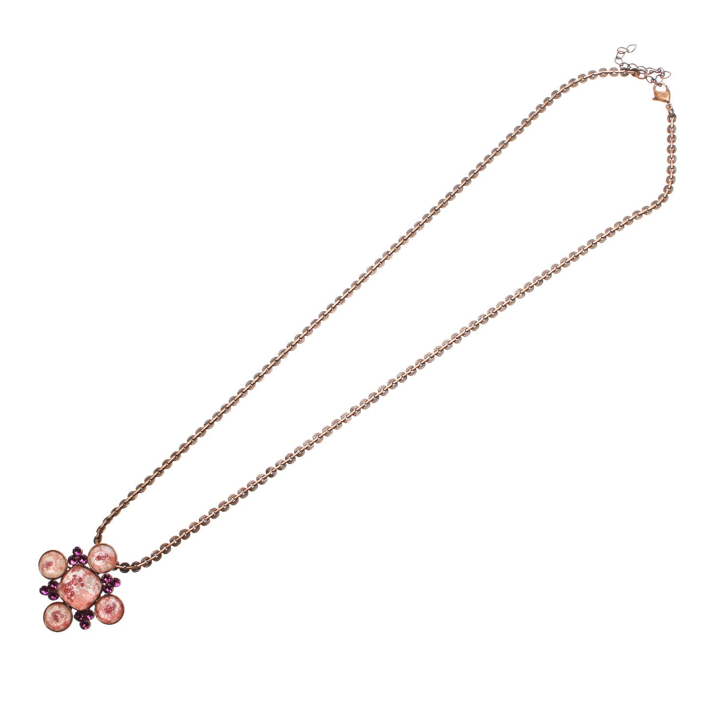 It is a brooch necklace using resin parts of "Plum Cake Series" (Pink). Pink and purple rhinestones of resin are stylish designs that attract the eye. It is a 2-way type which also becomes a brooch by removing a chain. Resin parts and metal parts are handmade.