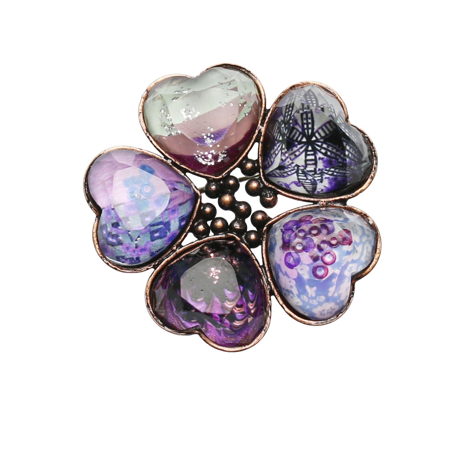 It is a brooch combining resin heart-shaped resin parts of "Lily Series"(Purple) "Plum Cake Series" (Purple)" "Marble Series" (Purple) "Carpet Series" (Purple) "Rainbow Series" (Purple). Recommended for casual accent of the chest.