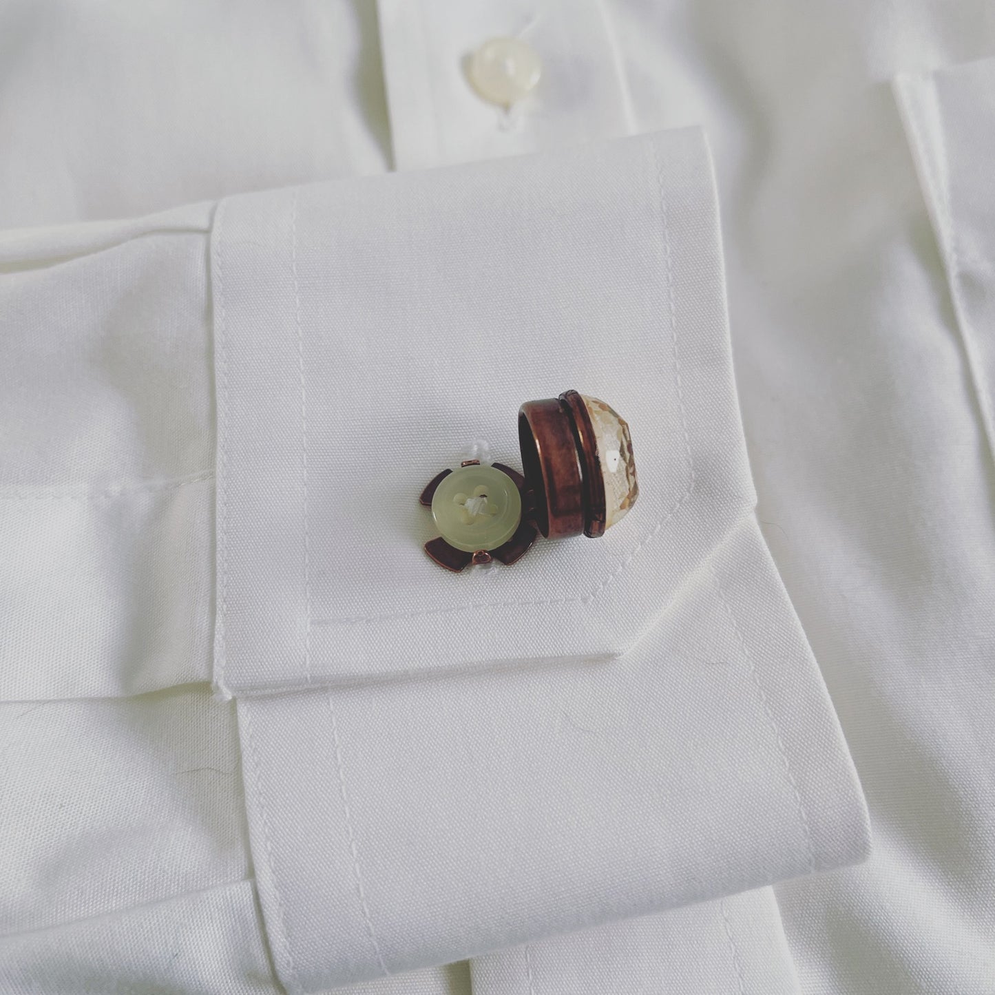 It is a button cover with resin parts of "Plum Cake Series" (Pink). Pull the eye in cute colors. Please to the unique fashion of cuffs. Because it is a button cover type, just put on the button of an ordinary shirt will make the sleeve original fashionable. It goes well with white shirts, beige, light blue, and clean shirt. It is also fashionable to put on the top of the front button. It is an item that you can enjoy fashion with a sense of brooch. It is an item that tickles playfulness even if a male put on or a lady put on.