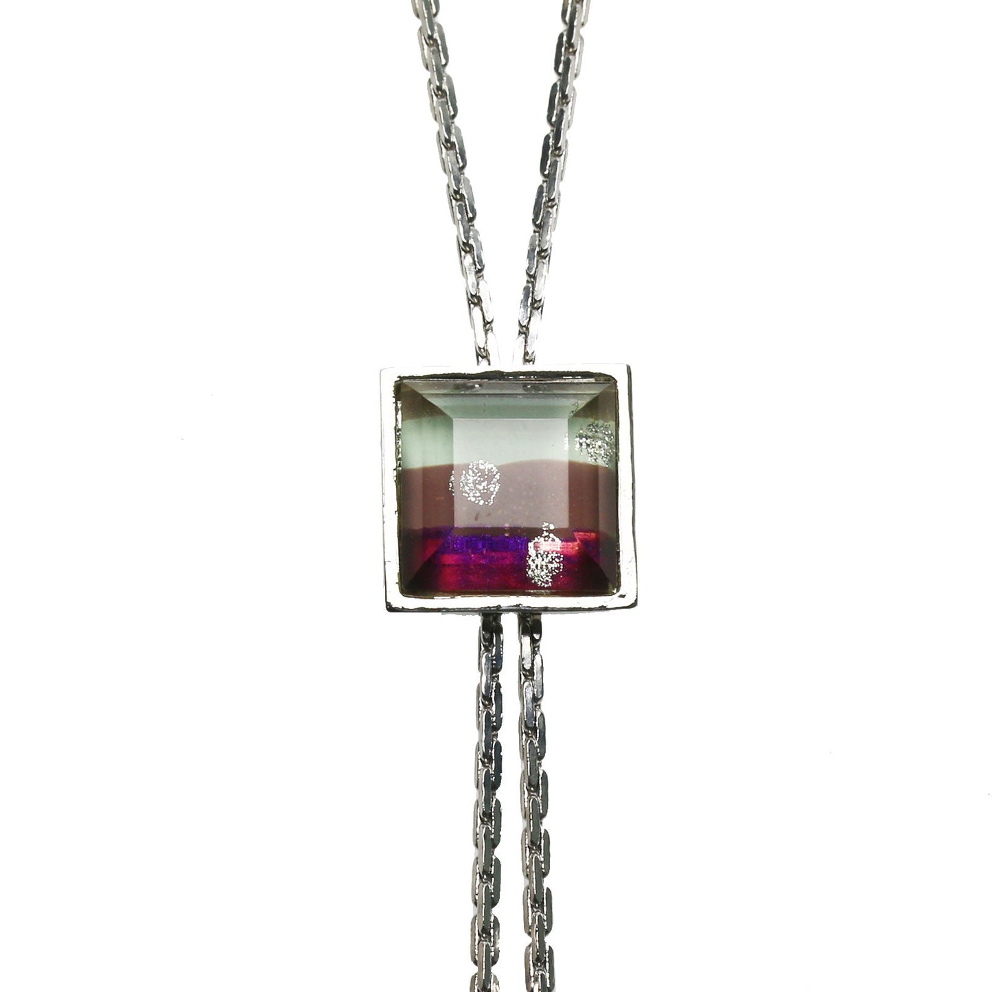 It is a chain bolo tie using resin parts of "Rainbow Series" (Purple). Blue lace, Amazonite, Amethyst is hanging according to the purple gradation resin hanging in a unique design. You can enjoy various ways of wearing according to clothes by moving the decorative part up and down. Not only shirts but also T shirts, cuts, knits and so on.