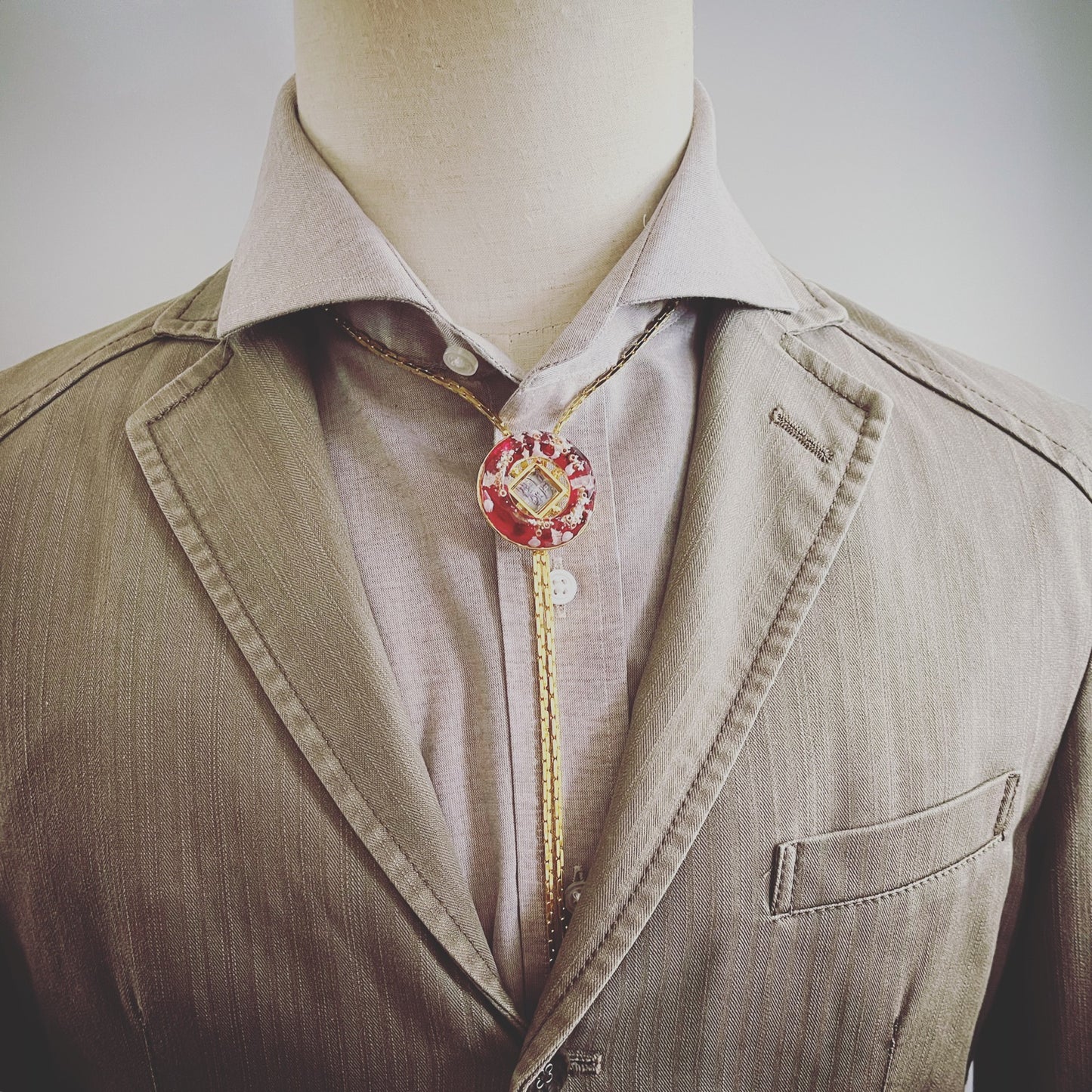 Chain Bolo Tie Red Light Blue Garnet Gold
