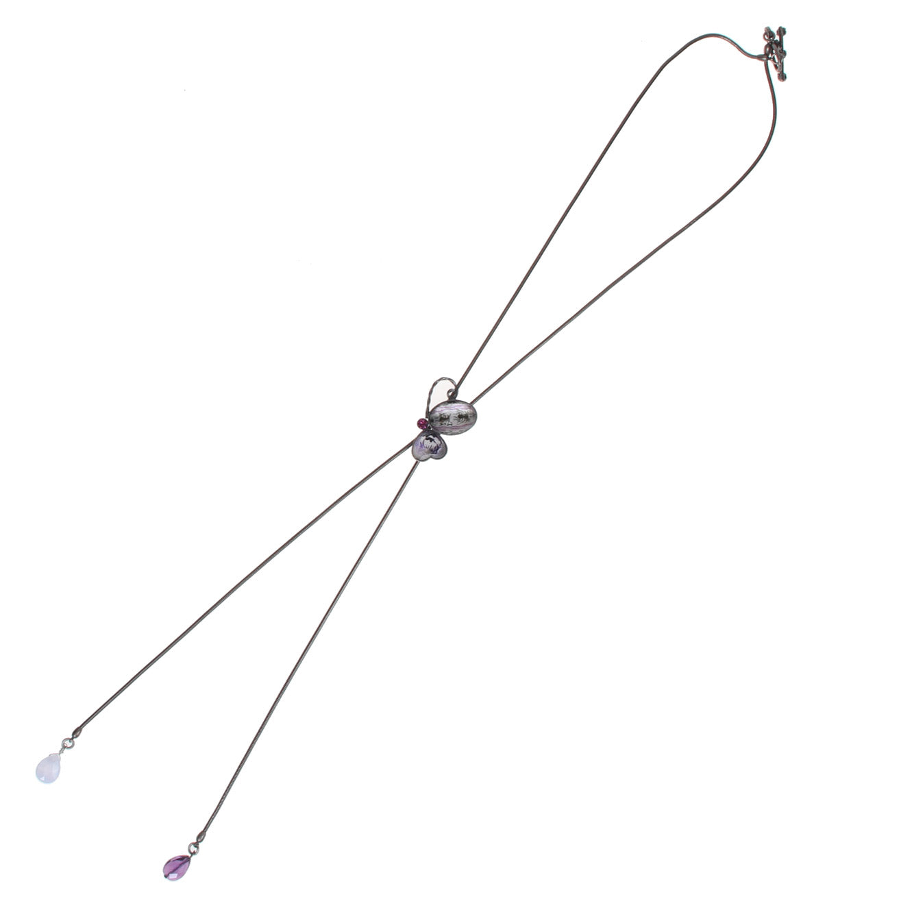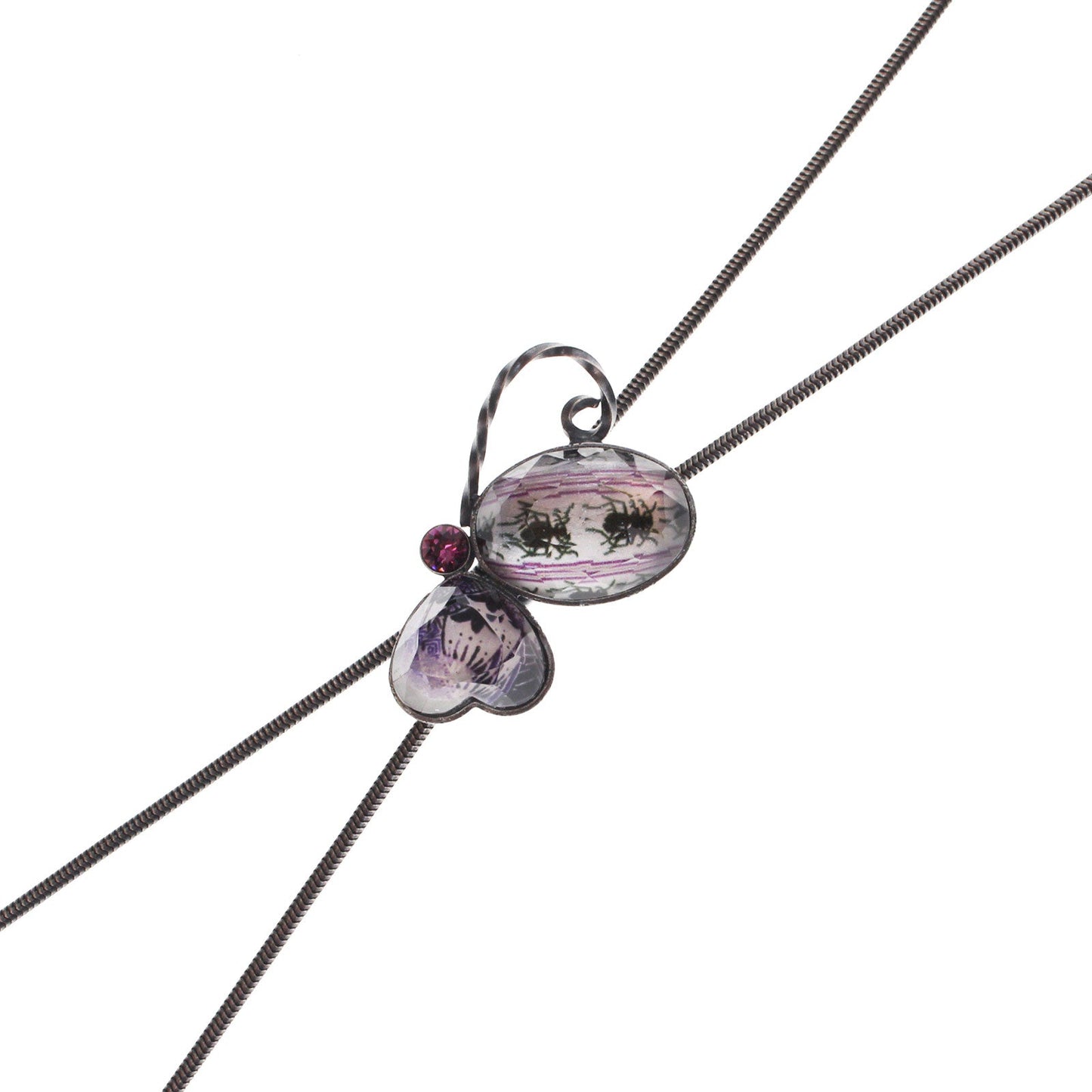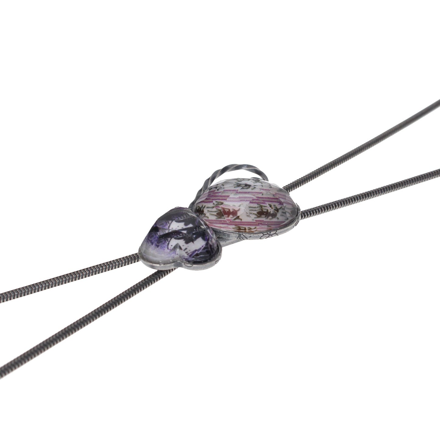 This chain bolo tie necklace using the resin parts of the "Tiger Beetle Series" "Lily Series" (Purple). It was a combination of amethyst and blue race to match the hue of the resin. Decoration part can be moved up and down. You can enjoy to fit the clothes.
