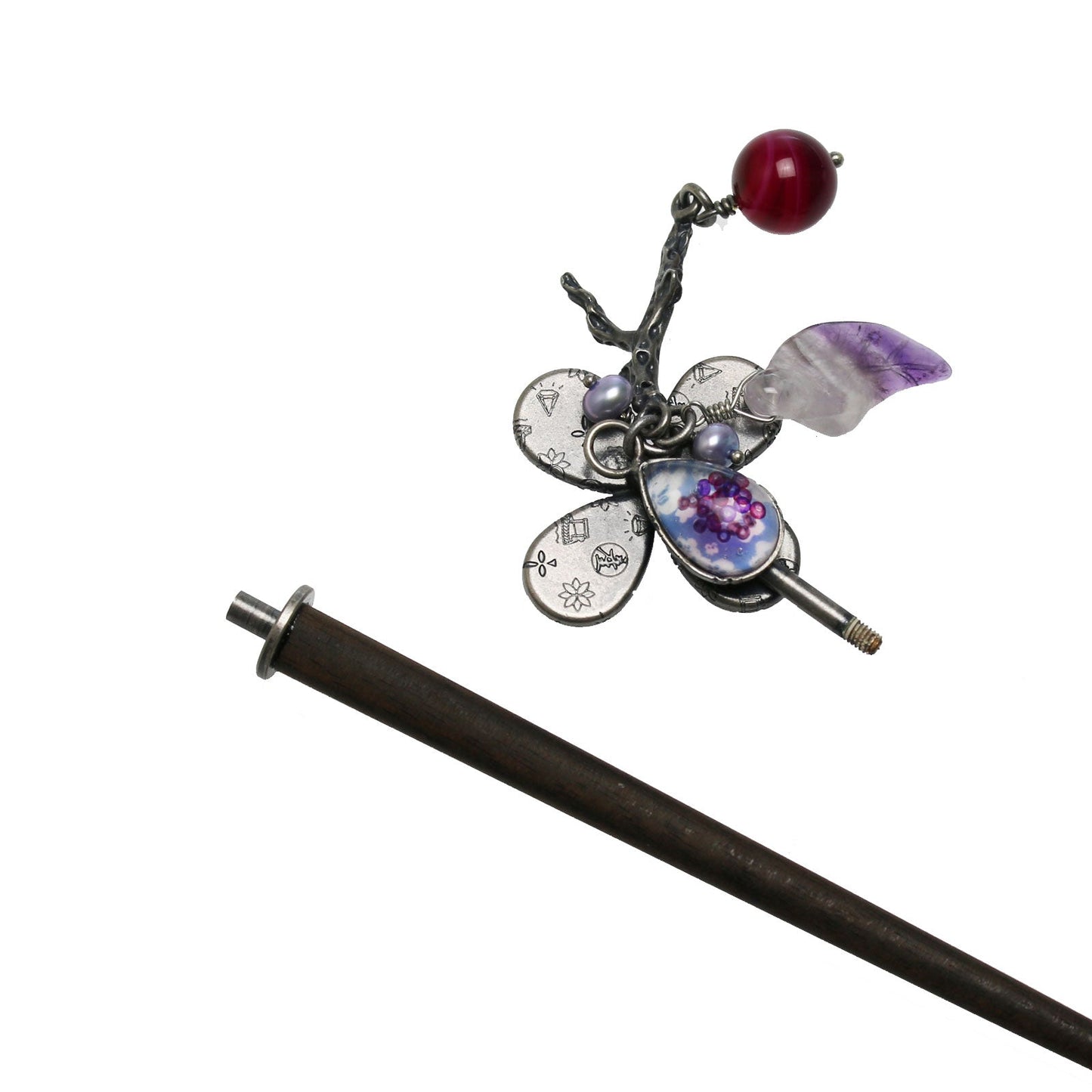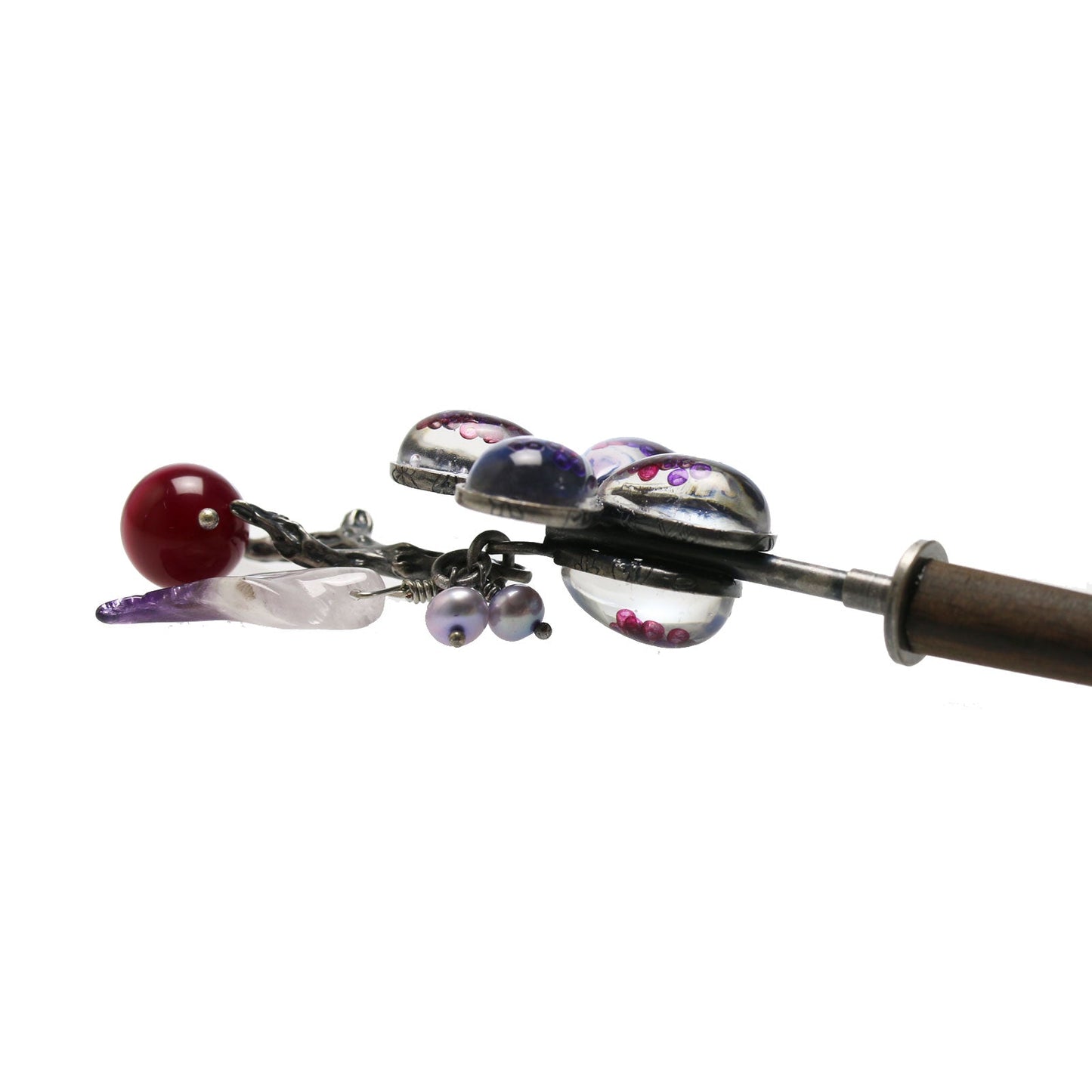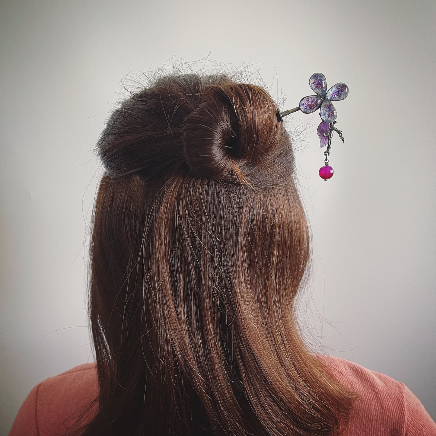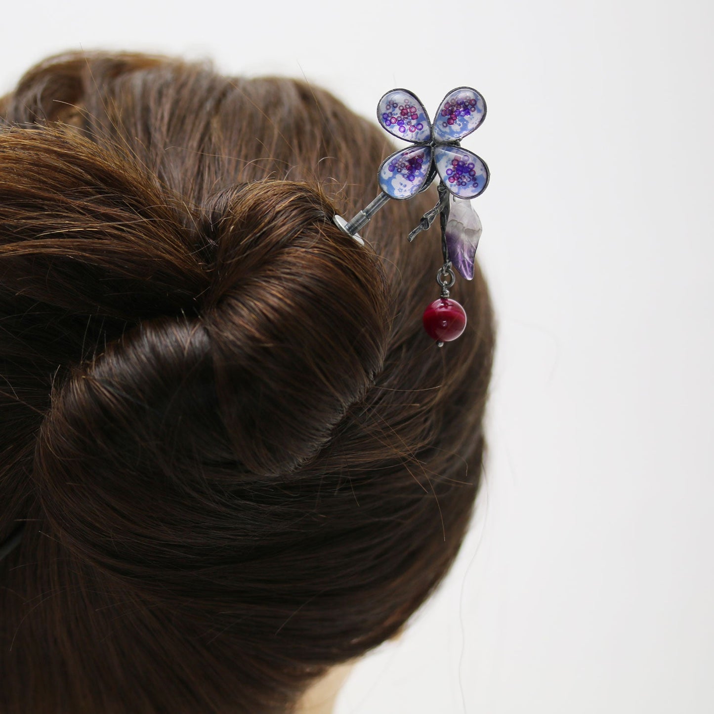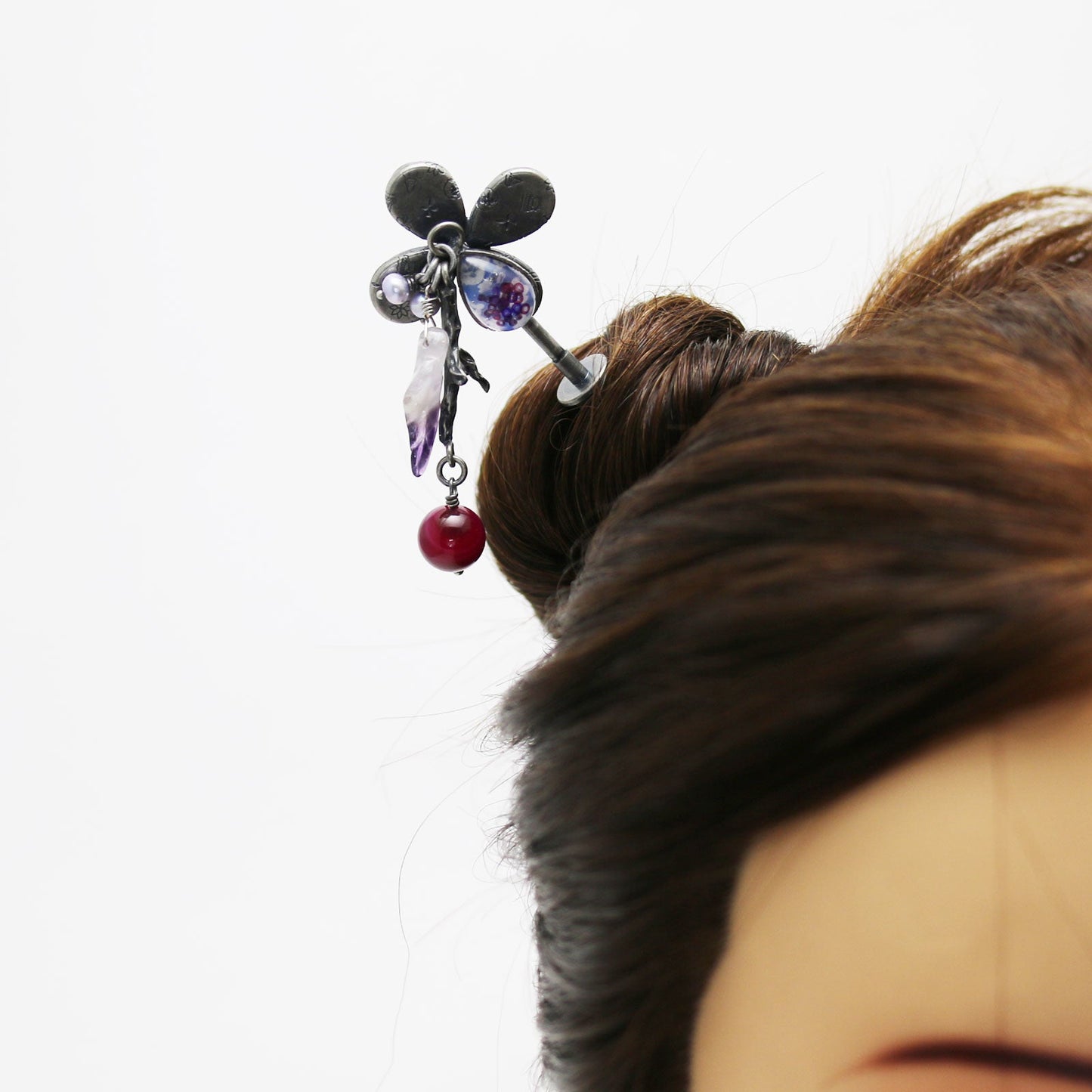 This is a changeable ornament hairpin using the resin parts of "Plum Cake Series" (Purple). It was a combination of amethyst, agate, a freshwater pearl to match the resin tint.