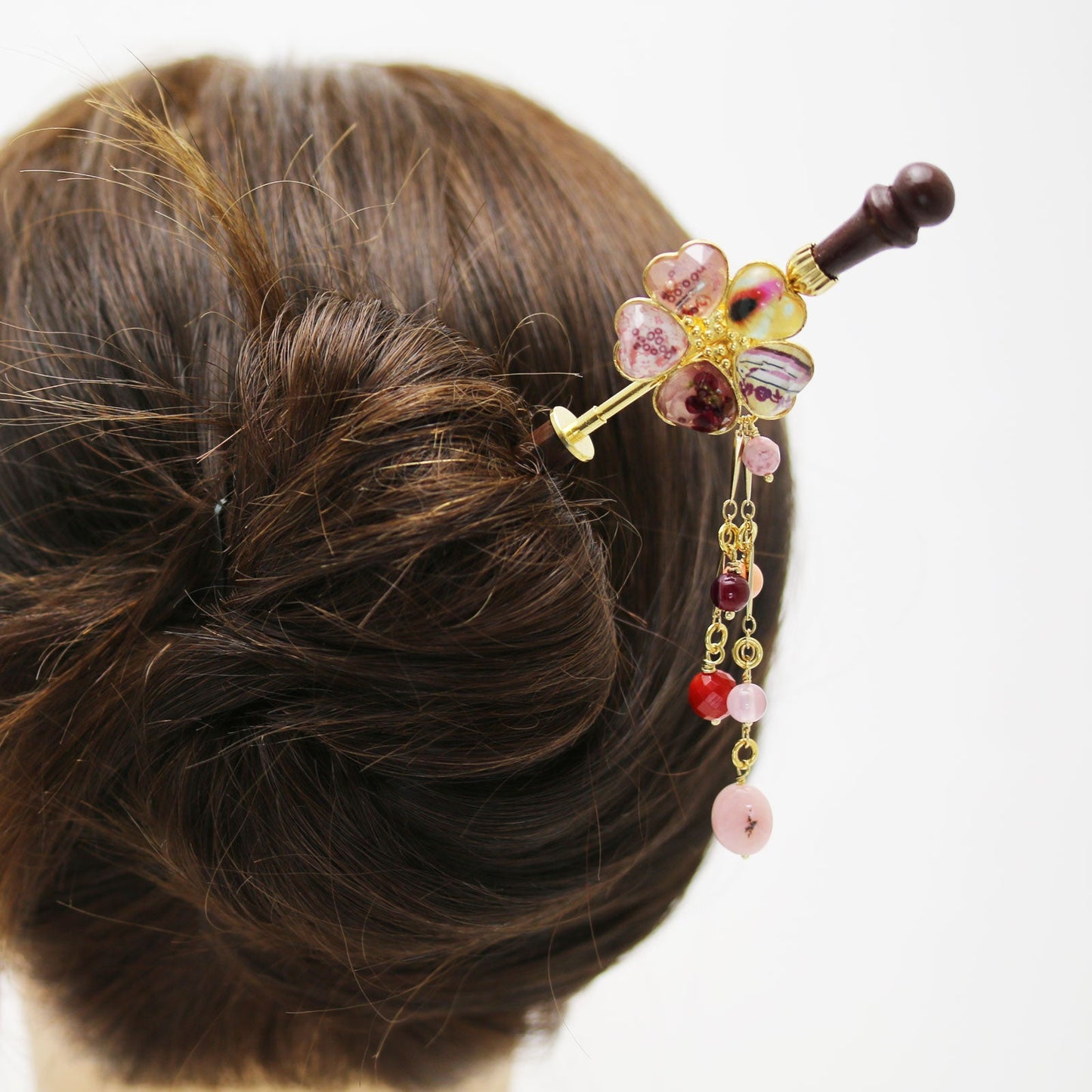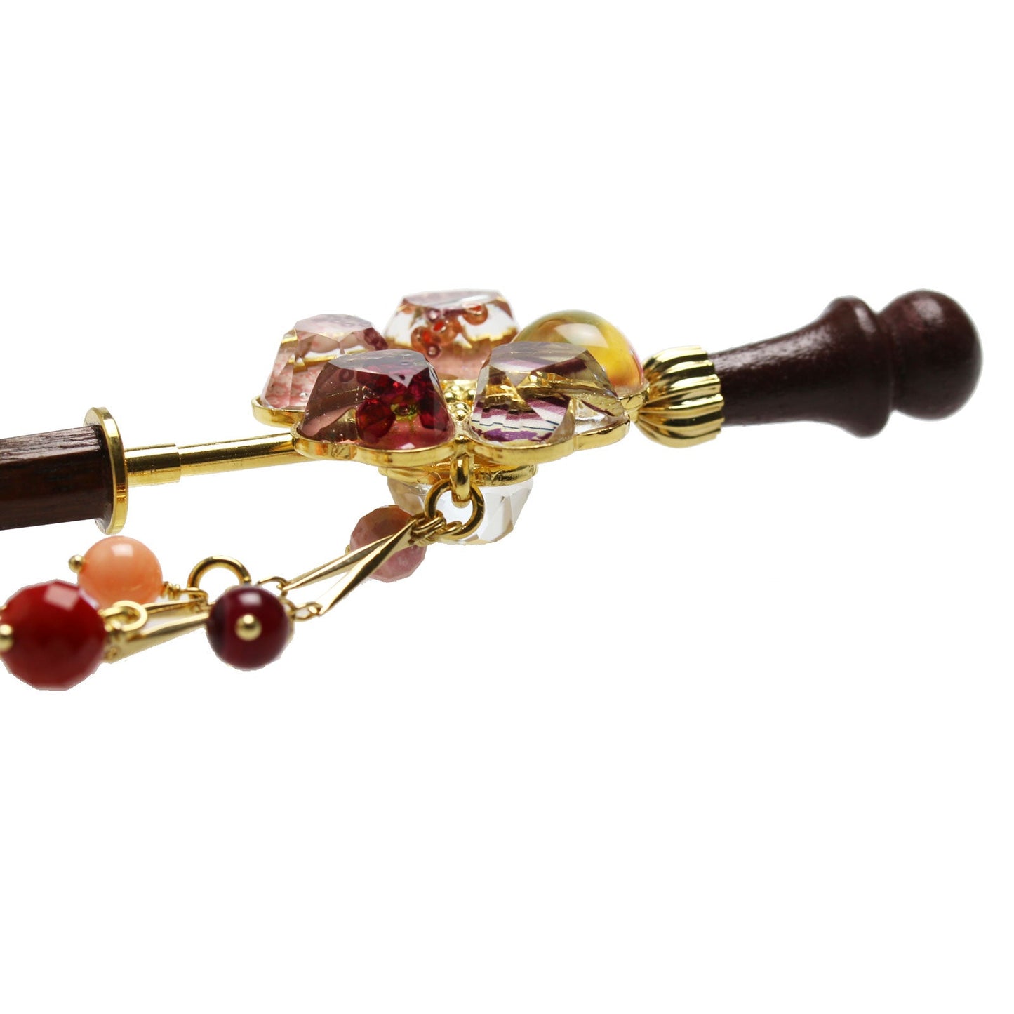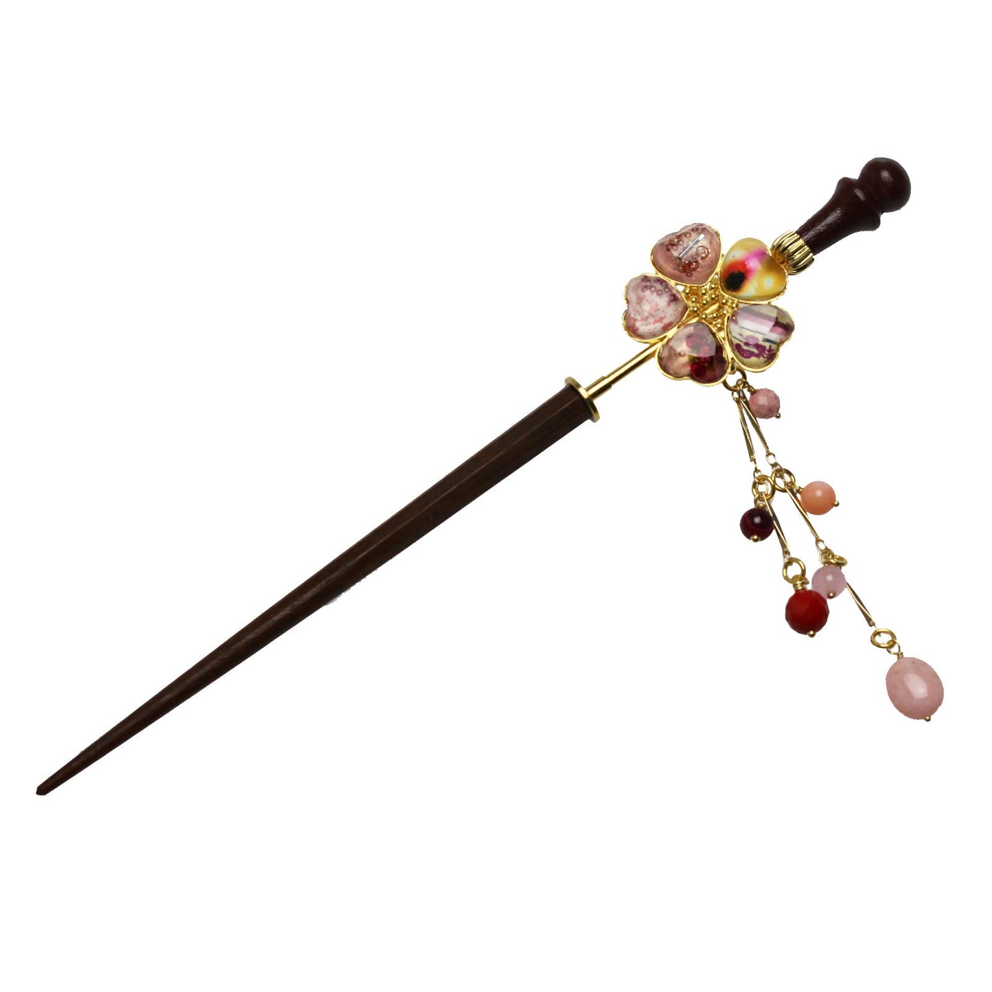 It is a changeable ornament hairpin using the resin parts of "Dororon Series"(Pink) "Pollen Series" (Pink) "Candy Series" (Pink) "New Rose Tree Series" (Pink) "Jewel Box Series" (Pink) "Plum Cake Series" (Pink) . Pink common opal, pink chalcedony (dyed) , coral (dyed) and roadnite agate (dyed) are dangled according to the color of the resin. Pink gradation and flower shape are cute, it fits your hair. Recommended for gorgeous accent of hairstyle.