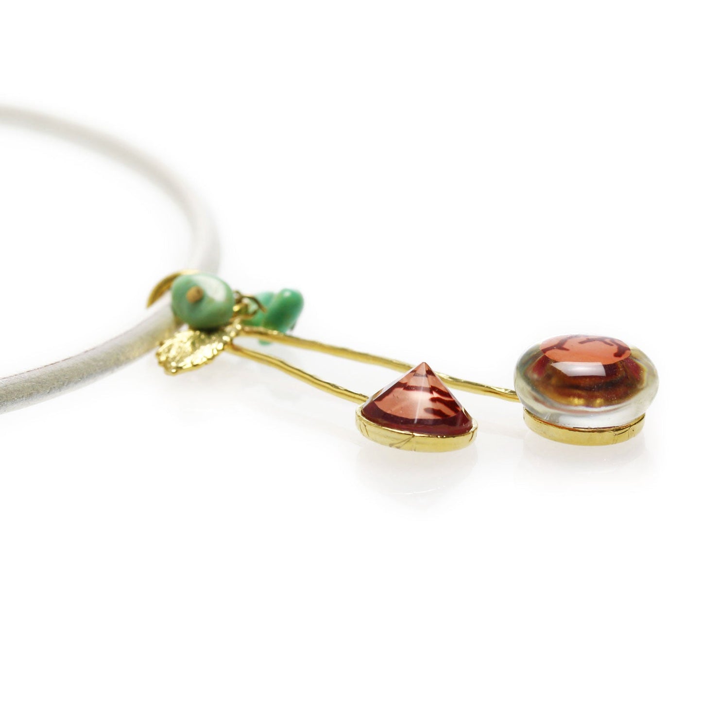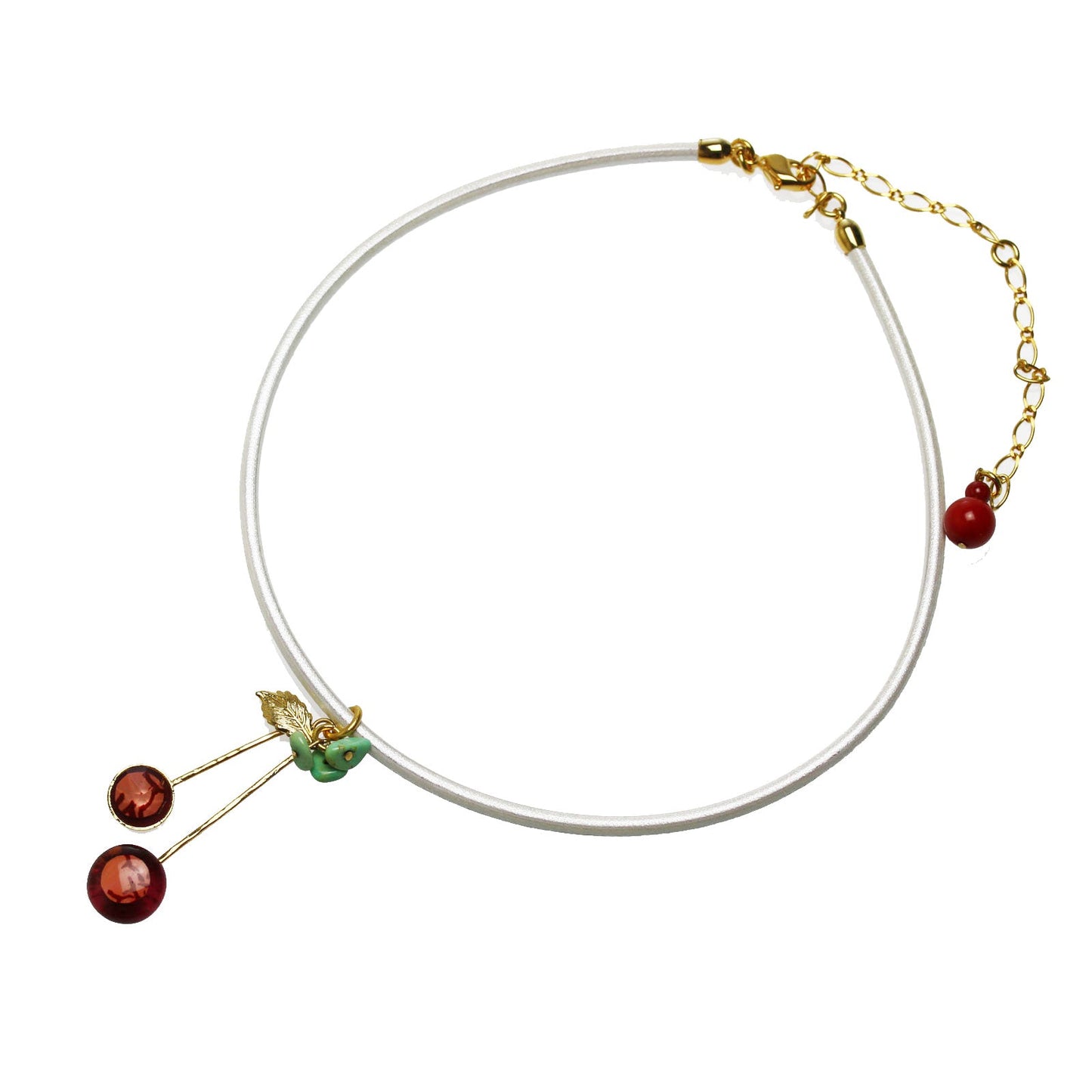 It is leather cord choker using the resin parts of the "Oxblood Coral Series". Decoration part is the cherry of blood red coral pattern.