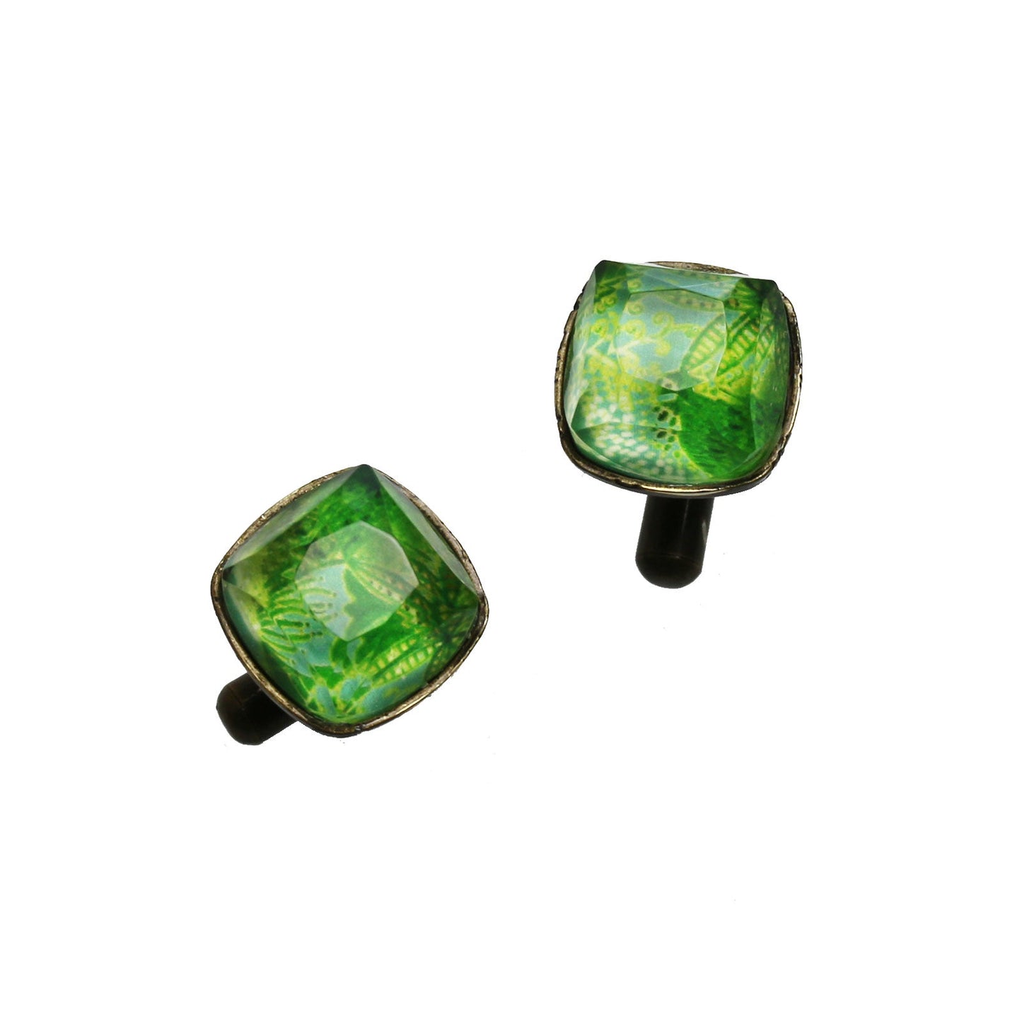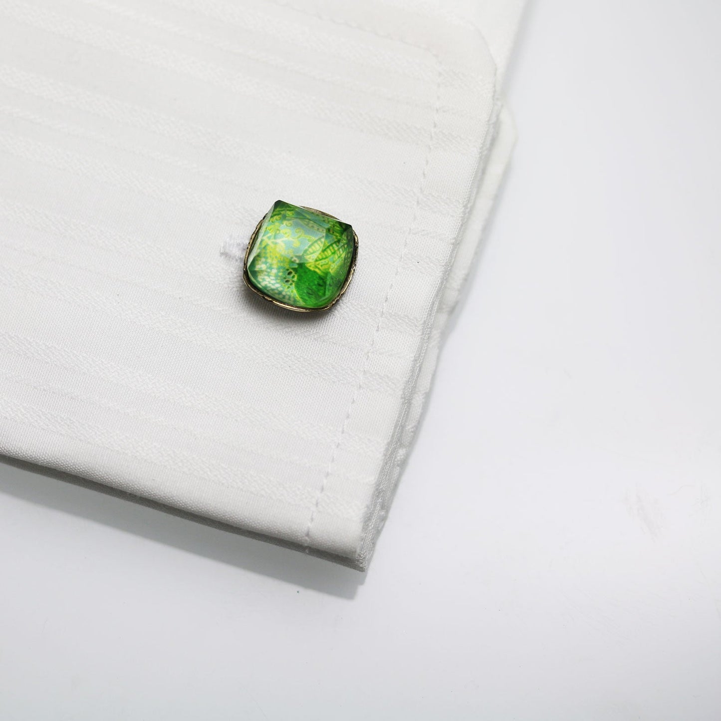It is a cufflink button using the square resin parts of "Lily Series" (Yellow Green). A clean green attracts eyes. You can enjoy the casual fashionable unique cuffs.