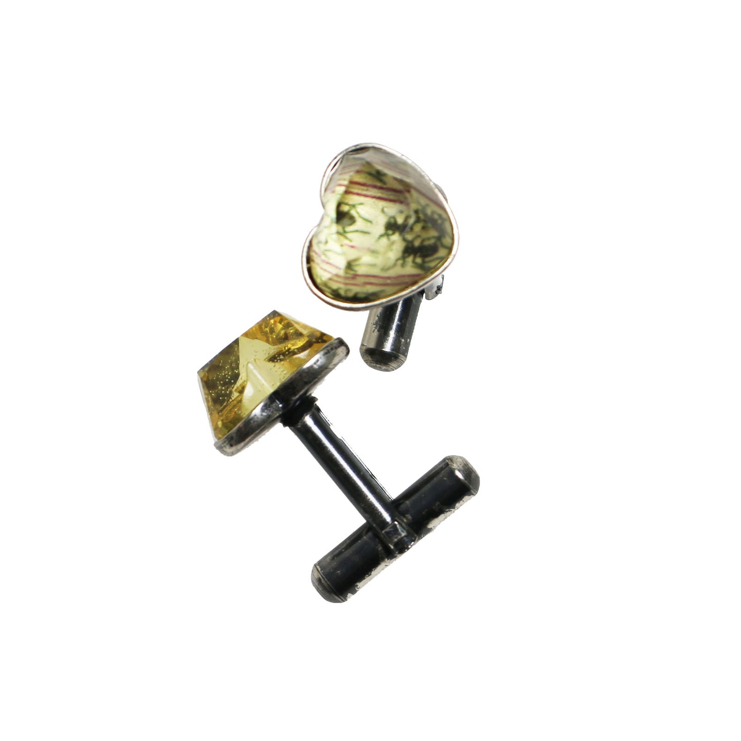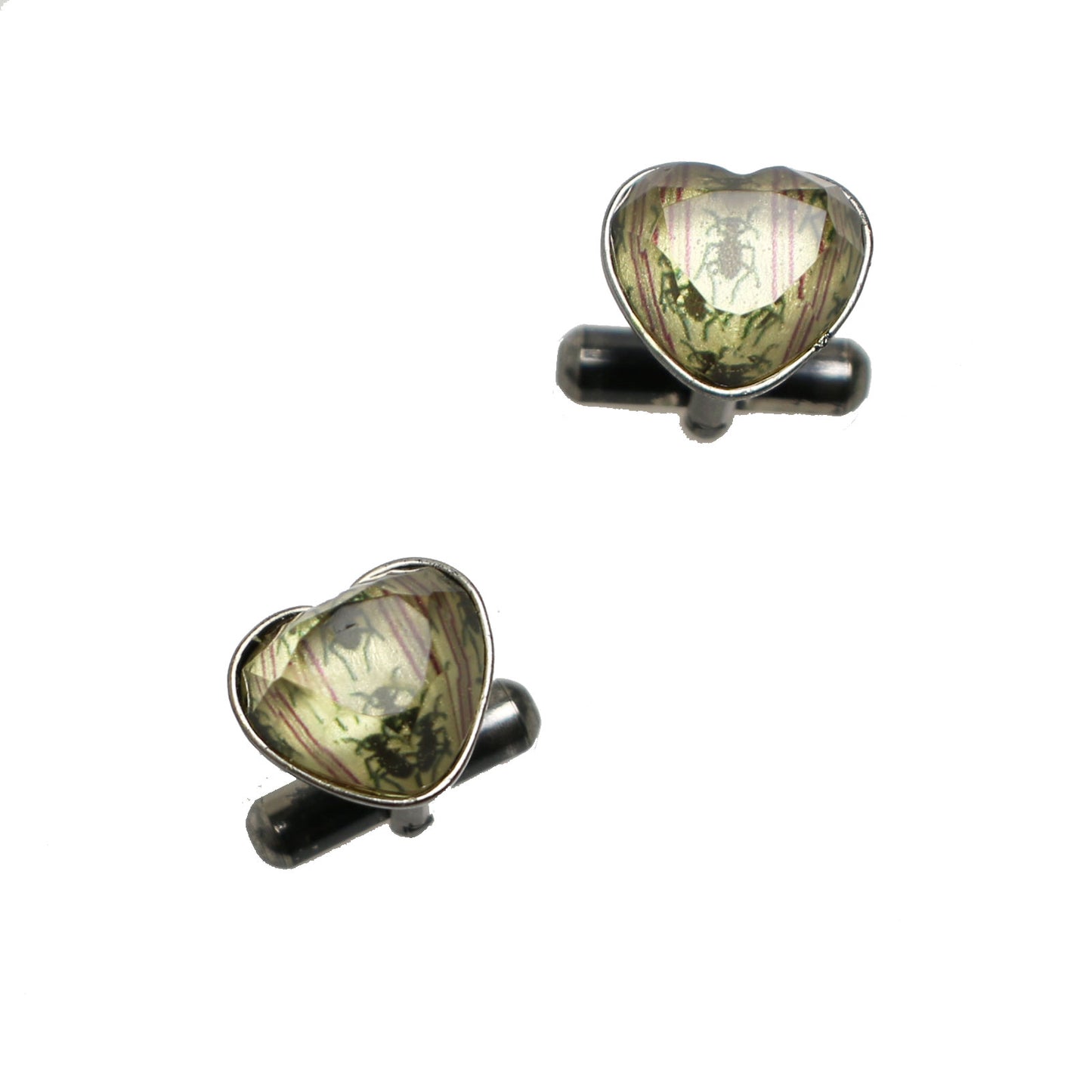 It is a pair of cuff links using the resin parts from the "Tiger Beetle Series." It is an attractive design with a three-dimensional heart. You can enjoy just looking at them.