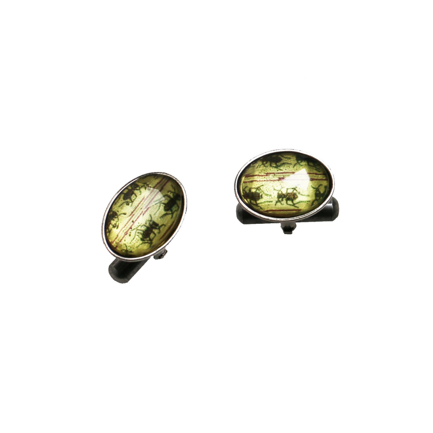 It is a pair of cuff links using the resin parts from the "Tiger Beetle Series." The metallic color enhances the overall sense of transparency.